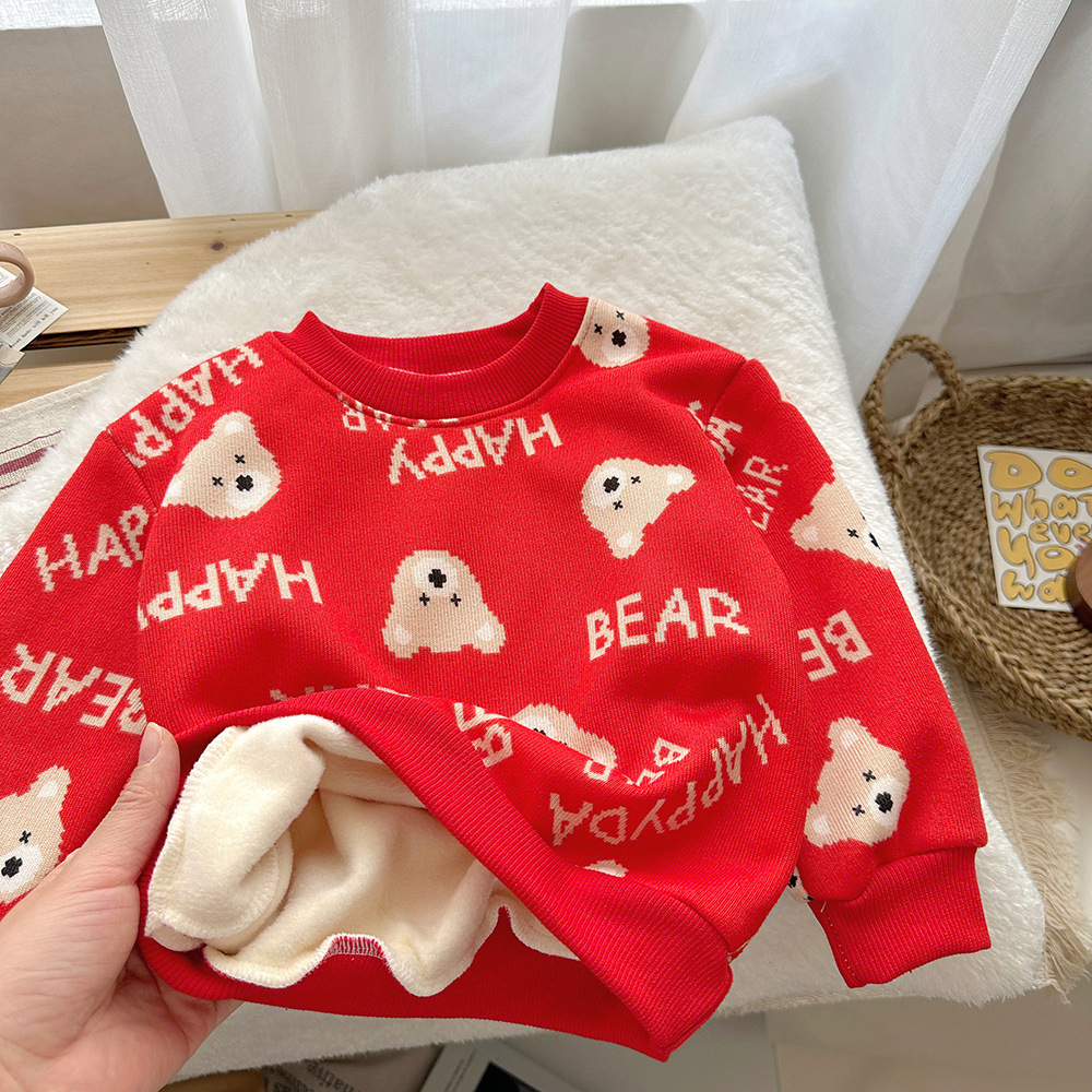Детский свитер на флисовой подкладке, свитер, Новинка осени и зимы, базовая теплая одежда для мальчиков, утепленная вязаная одежда для девочек, детская одежда