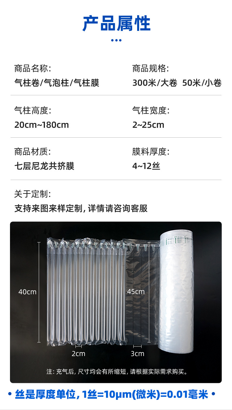 Противоударная пузырьковая колонна, упаковка для предотвращения столкновений, упаковка для рулонов воздушной колонны, упаковочная сумка для надувной колонны, заводская сумка для пузырьковой колонны с защитой от падения