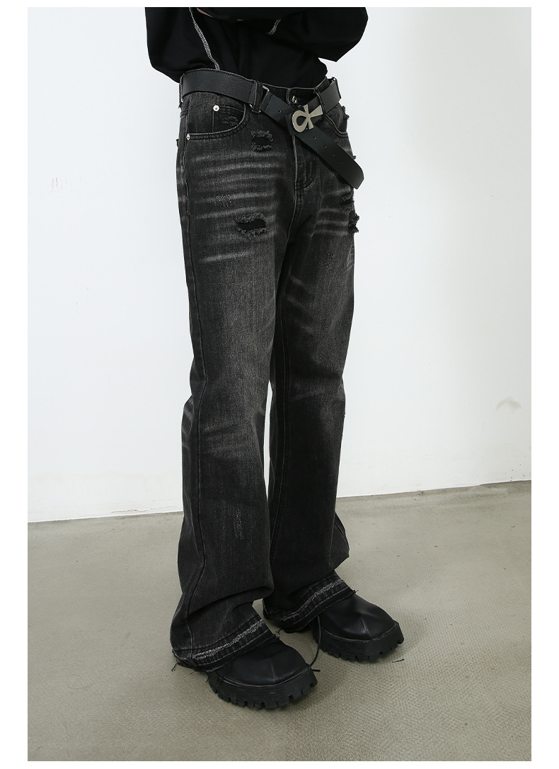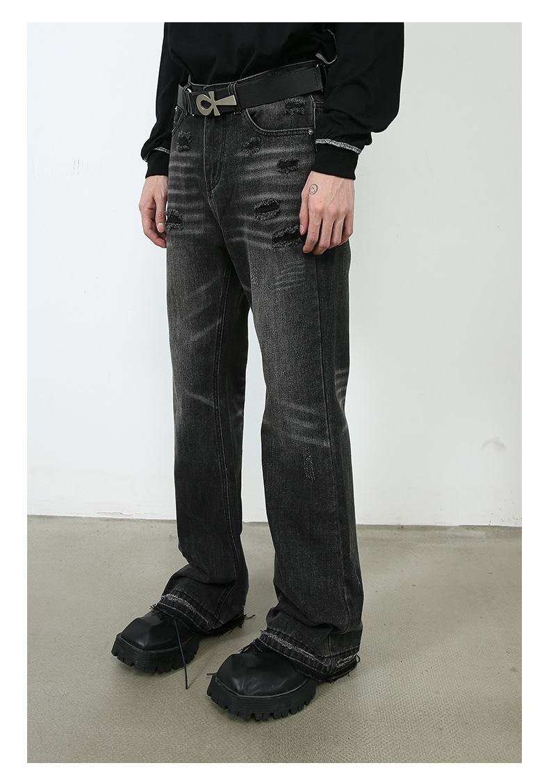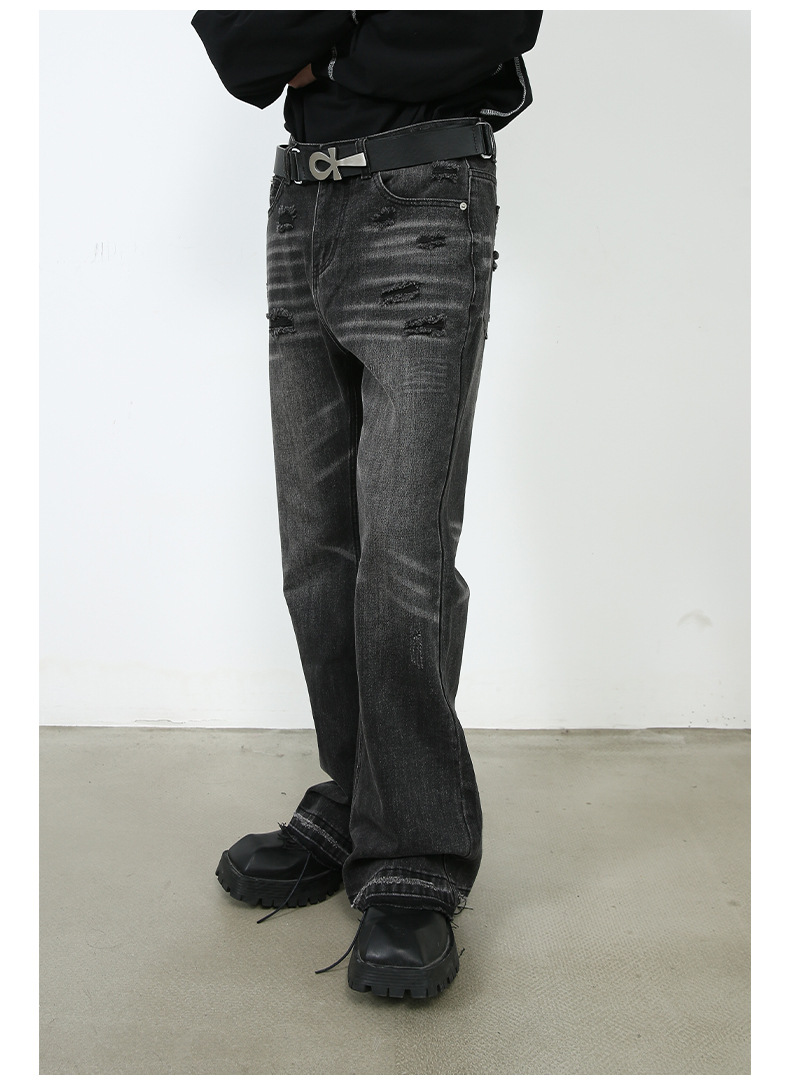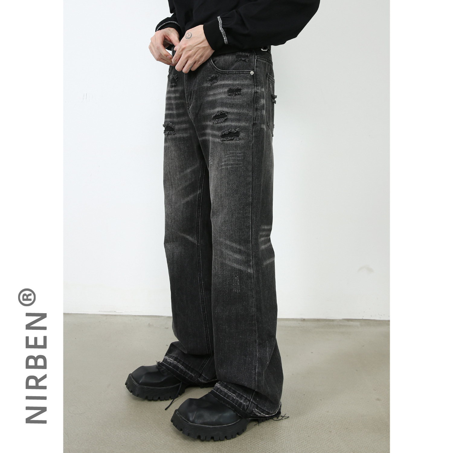 Nirben Denim | американские прямые модные брендовые джинсы в стиле ретро, мужские свободные микро штаны с потертостями, дизайн с потертостями
