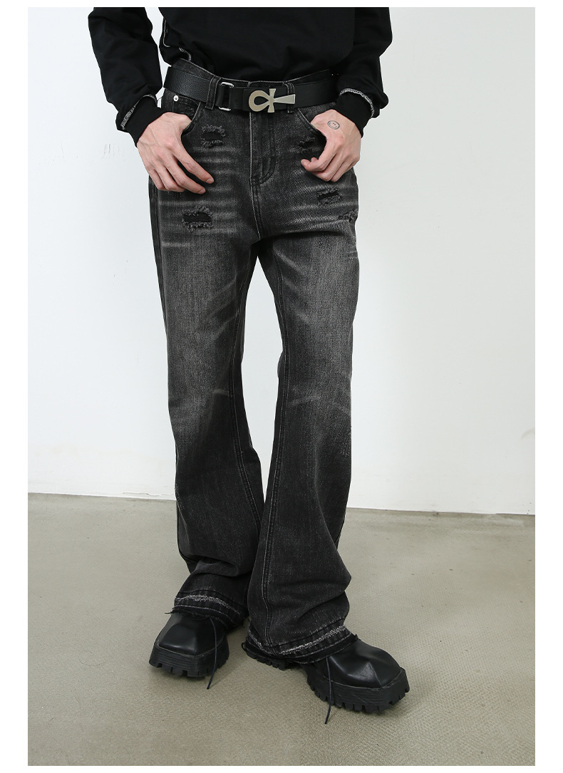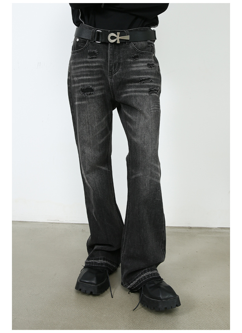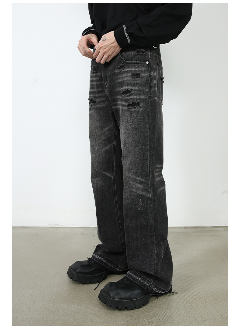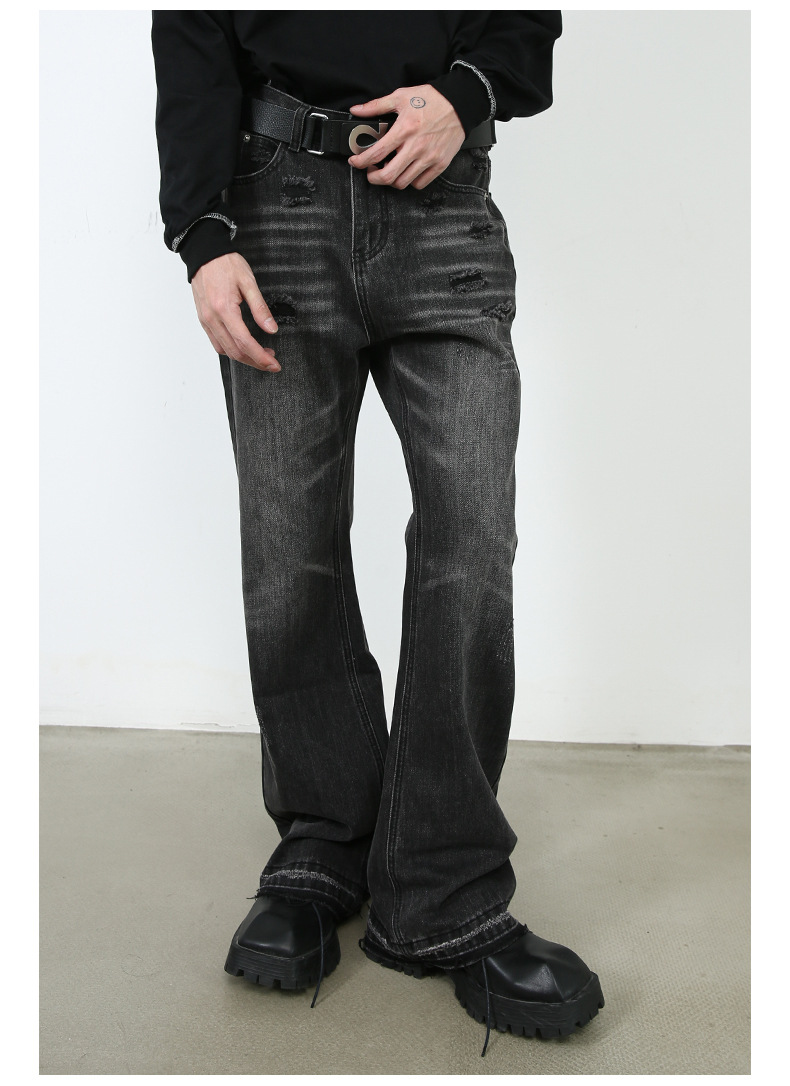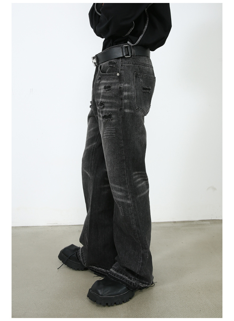 Nirben Denim | американские прямые модные брендовые джинсы в стиле ретро, мужские свободные микро штаны с потертостями, дизайн с потертостями
