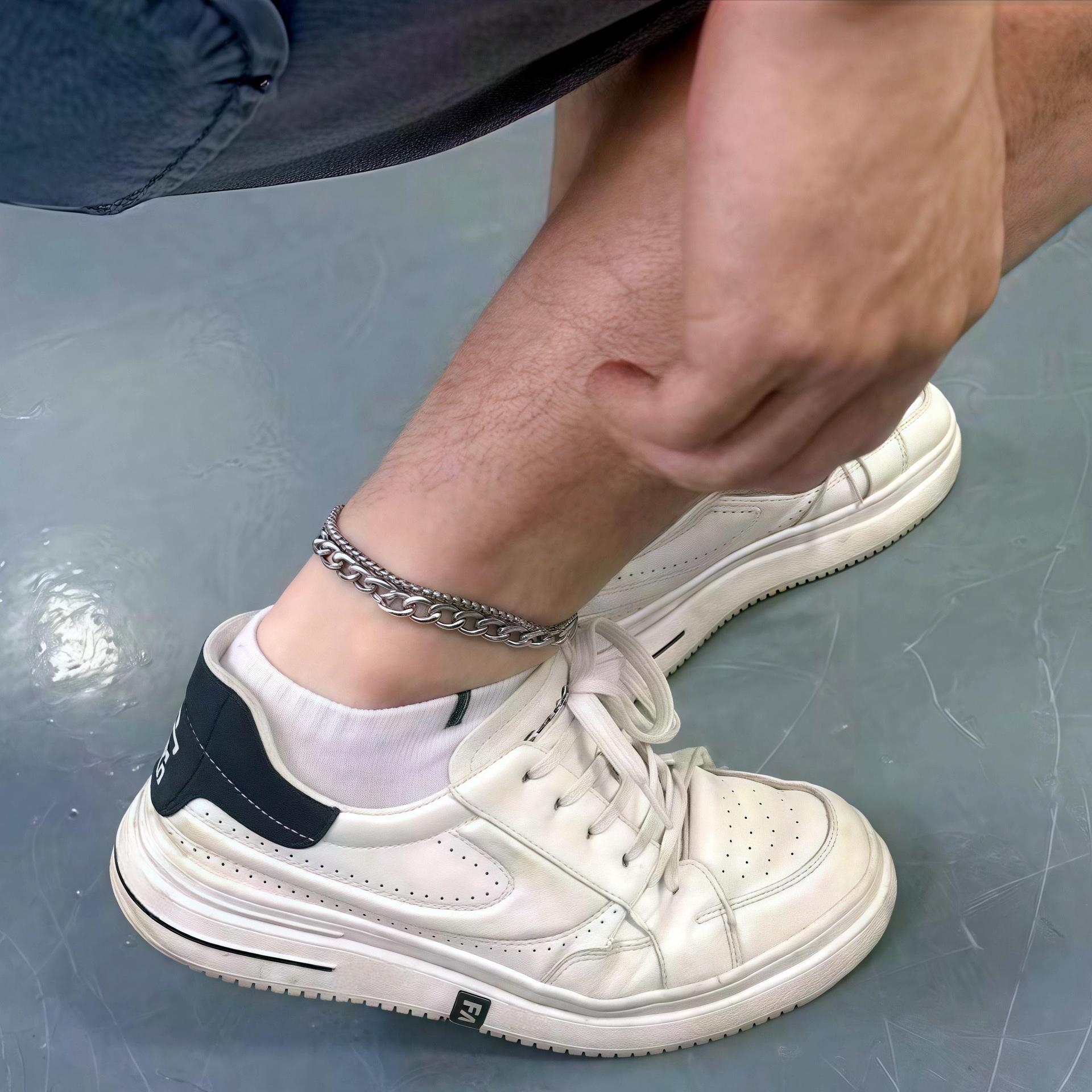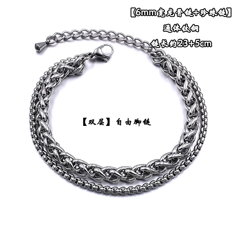 Простой антистатический браслет на ногу из титаново-стальной стали в стиле insK не выцветает, двухслойный браслет на ногу, мужские модные аксессуары для пар в стиле ins, многослойный браслет на ногу из нержавеющей стали, высококачественный браслет на ногу для девочек