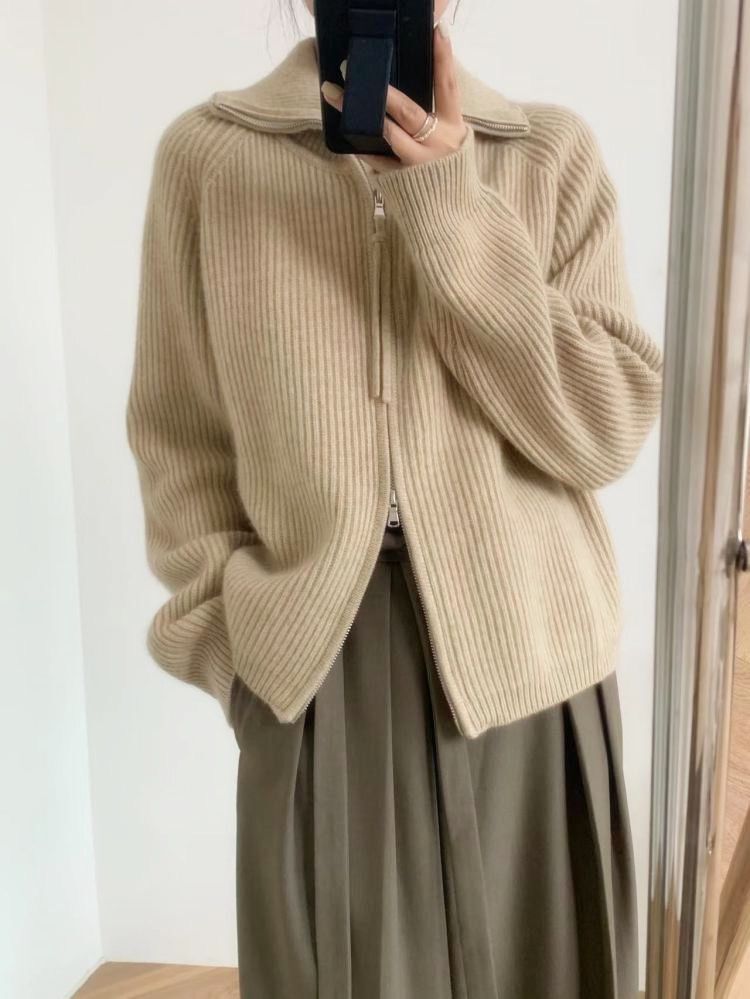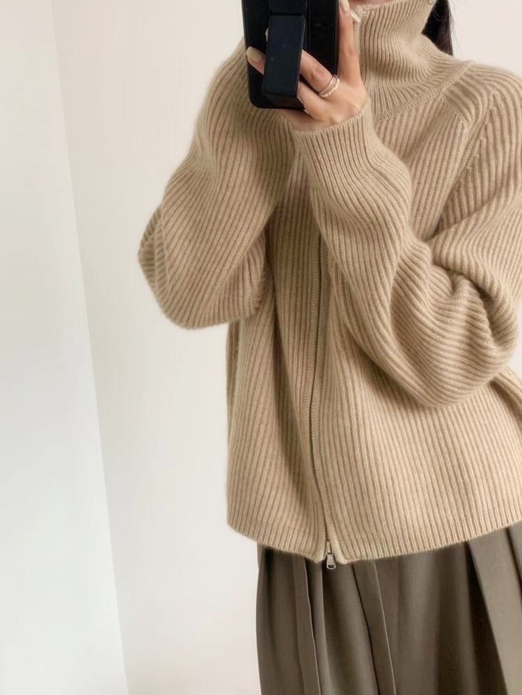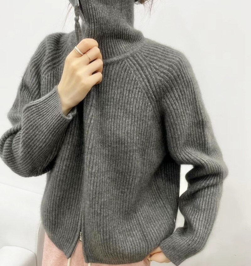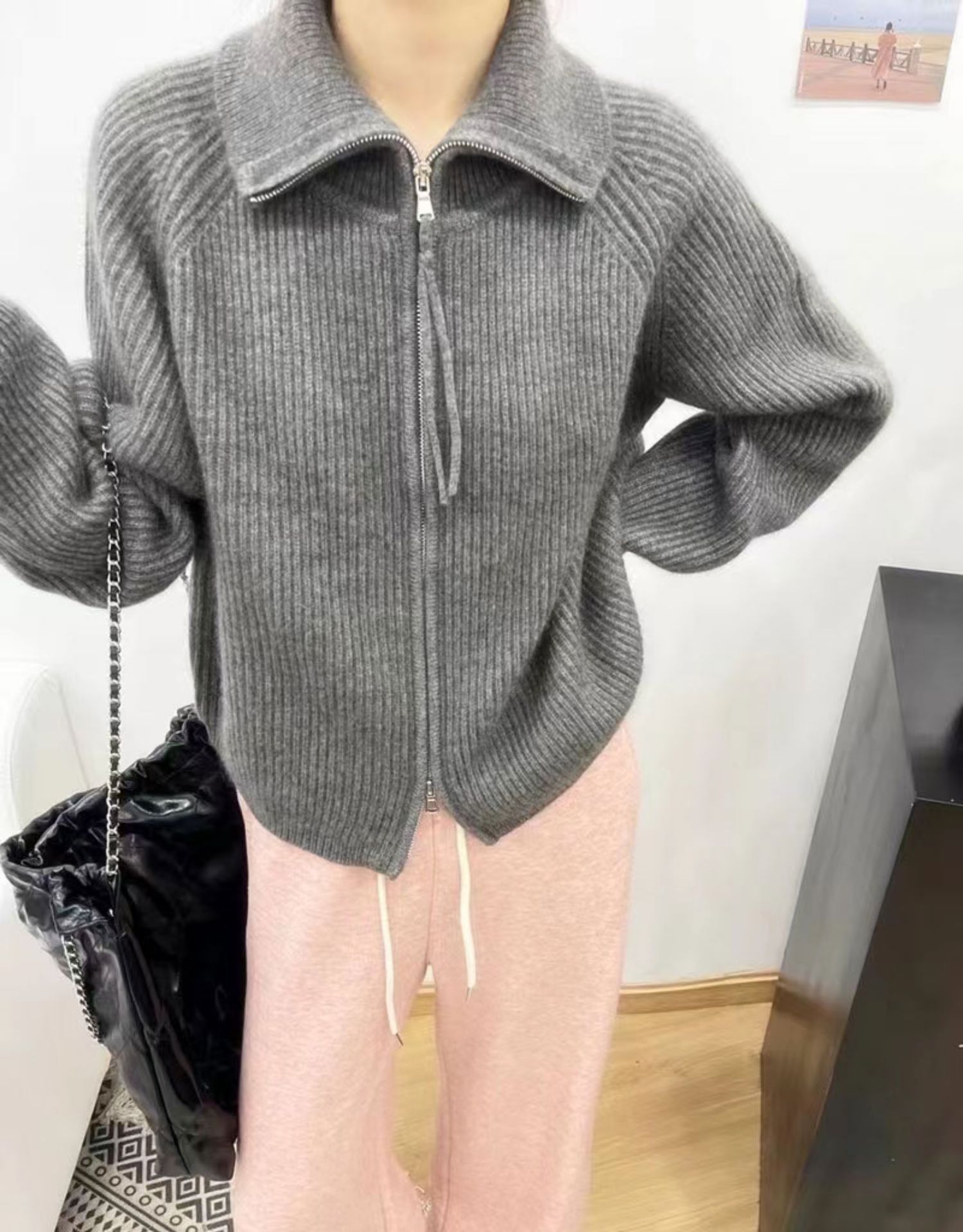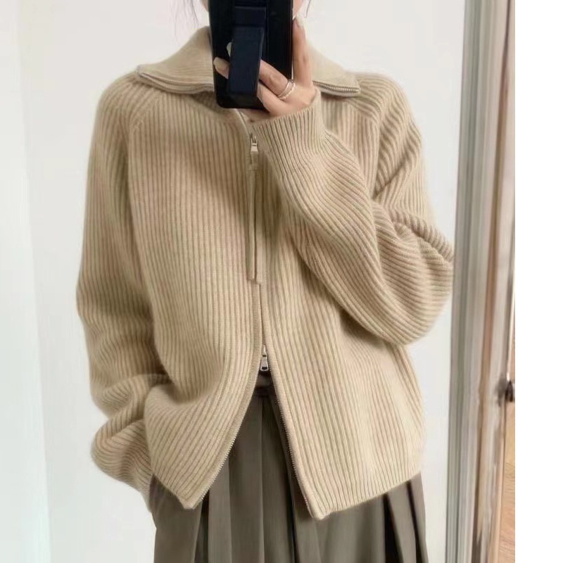 Осенне-Зимний новый утолщенный шерстяной кардиган, женский свитер с лацканами и двойной молнией, свободный кашемировый свитер, модная куртка