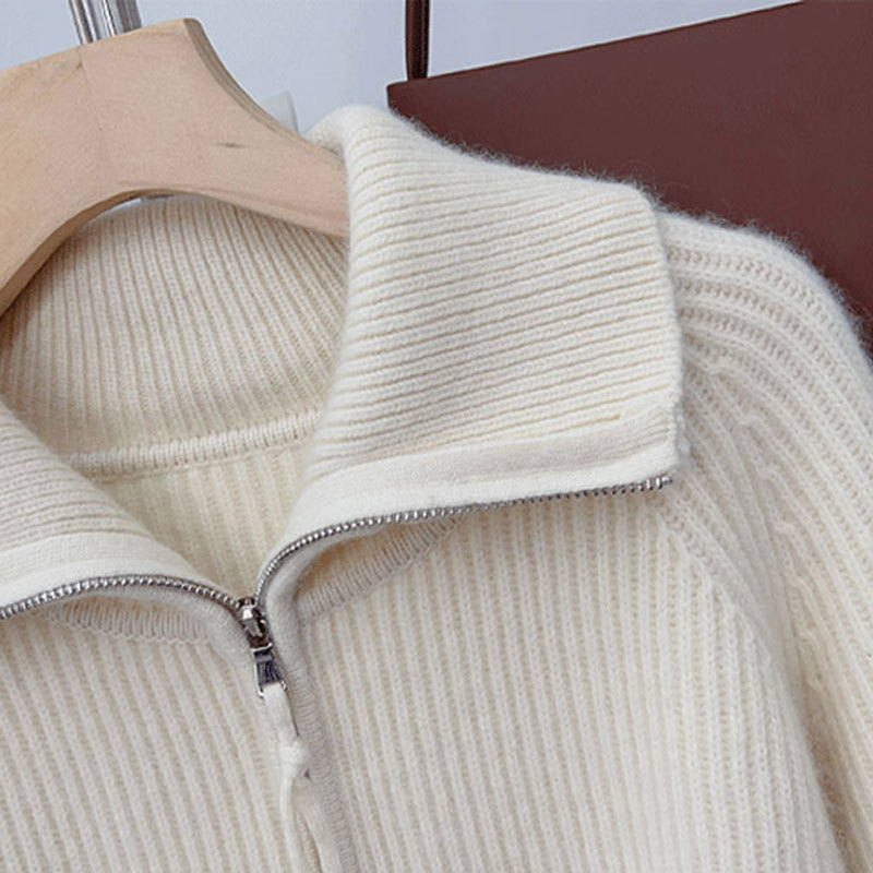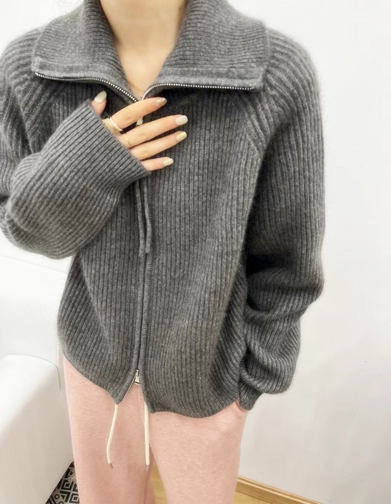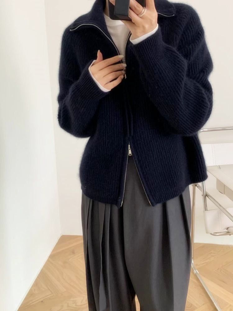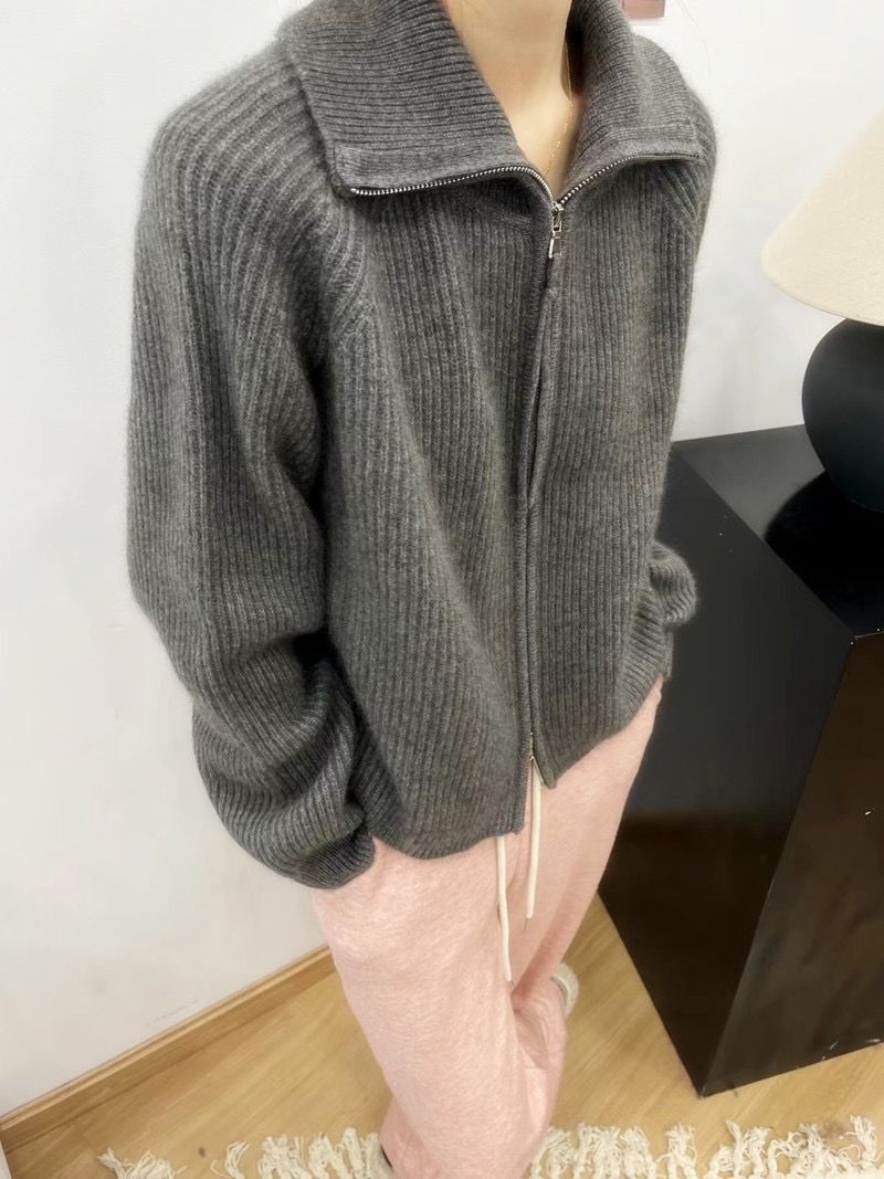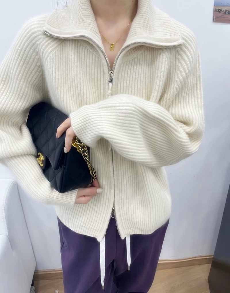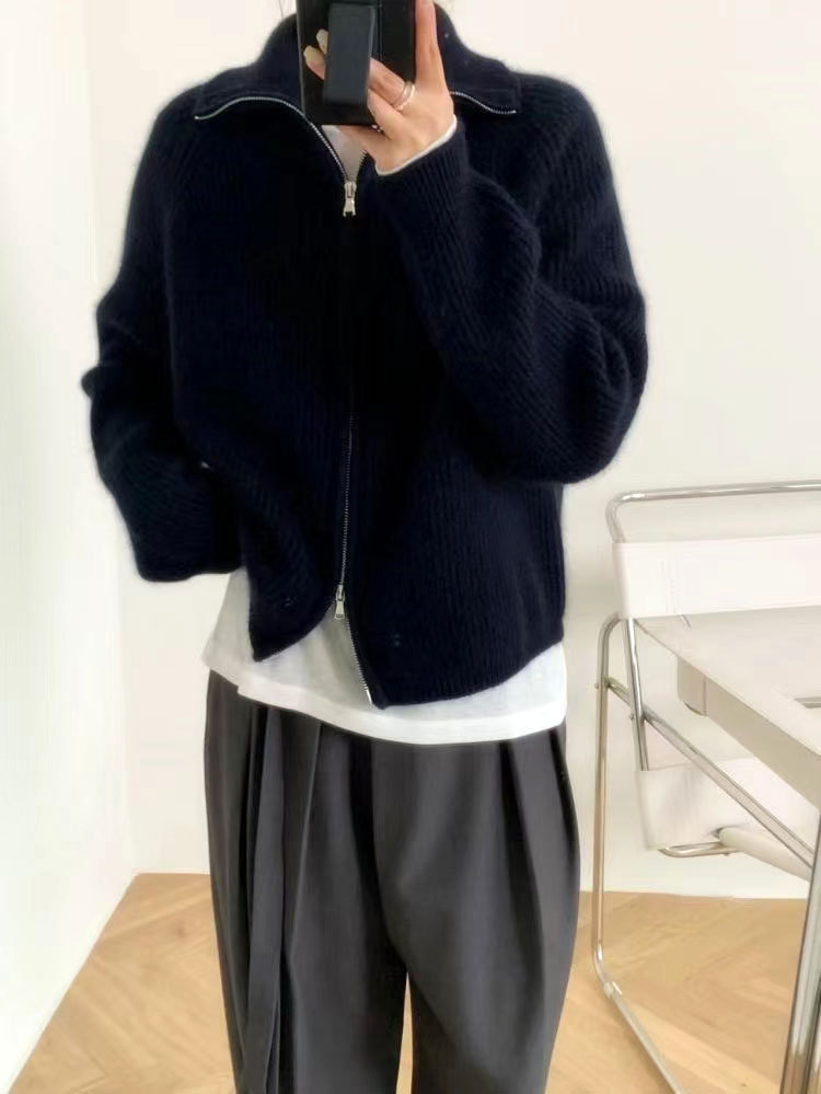 Осенне-Зимний новый утолщенный шерстяной кардиган, женский свитер с лацканами и двойной молнией, свободный кашемировый свитер, модная куртка