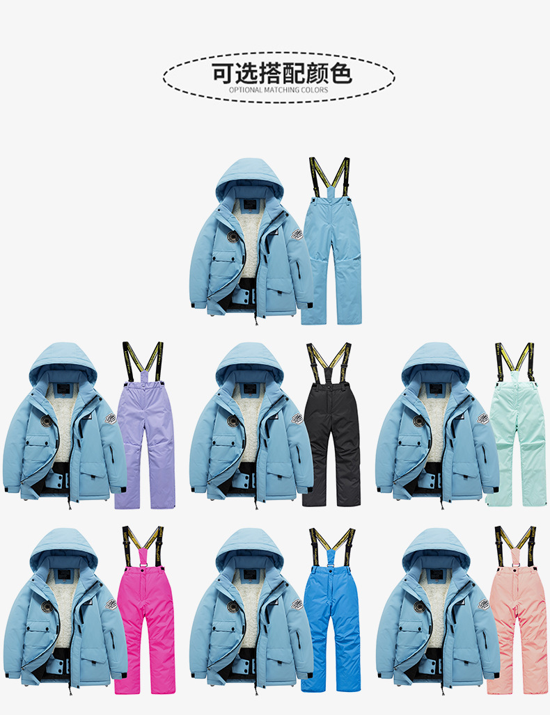 Новый зимний детский лыжный костюм для мальчиков и девочек, ветрозащитная и водонепроницаемая куртка, утолщенные и теплые профессиональные лыжные штаны для женщин.