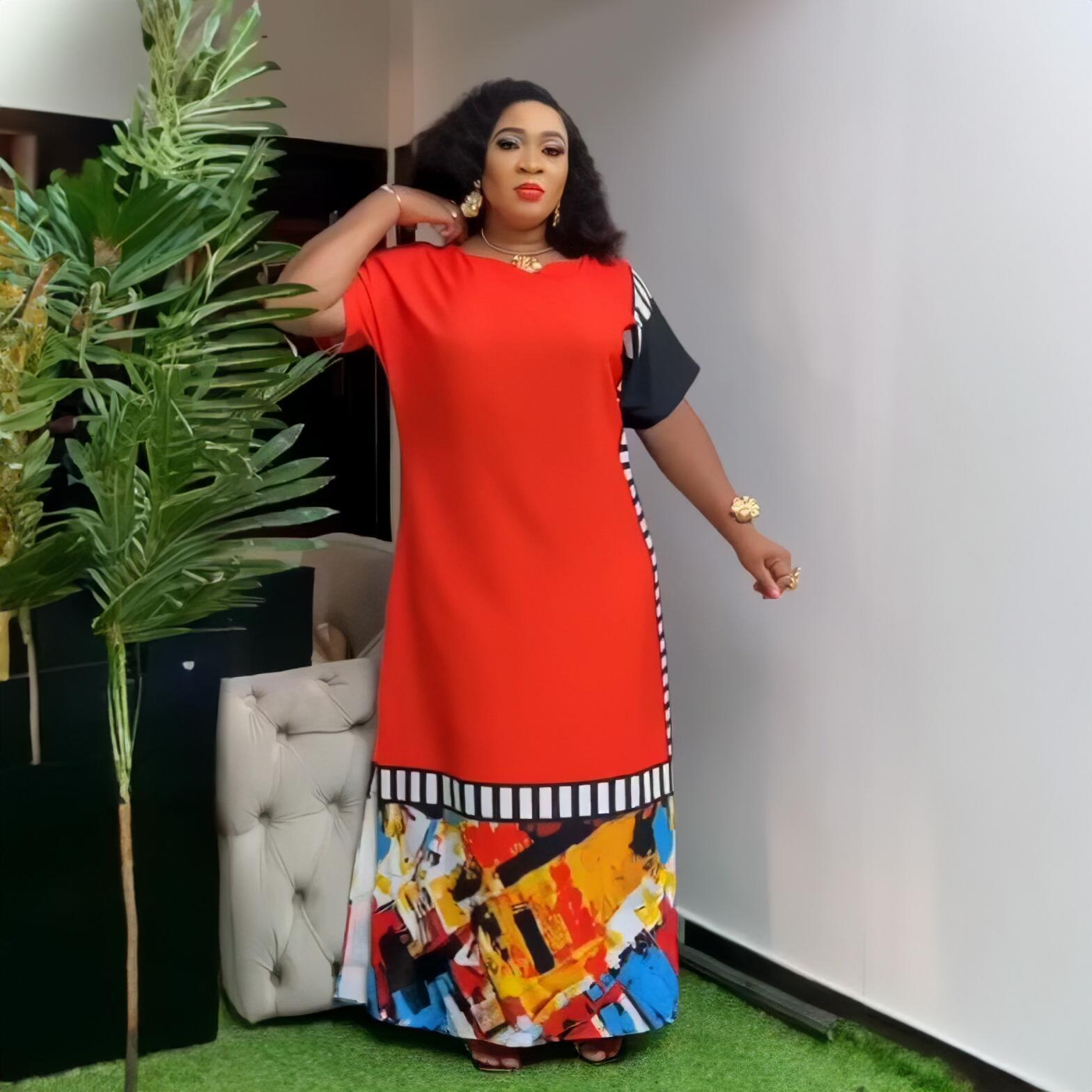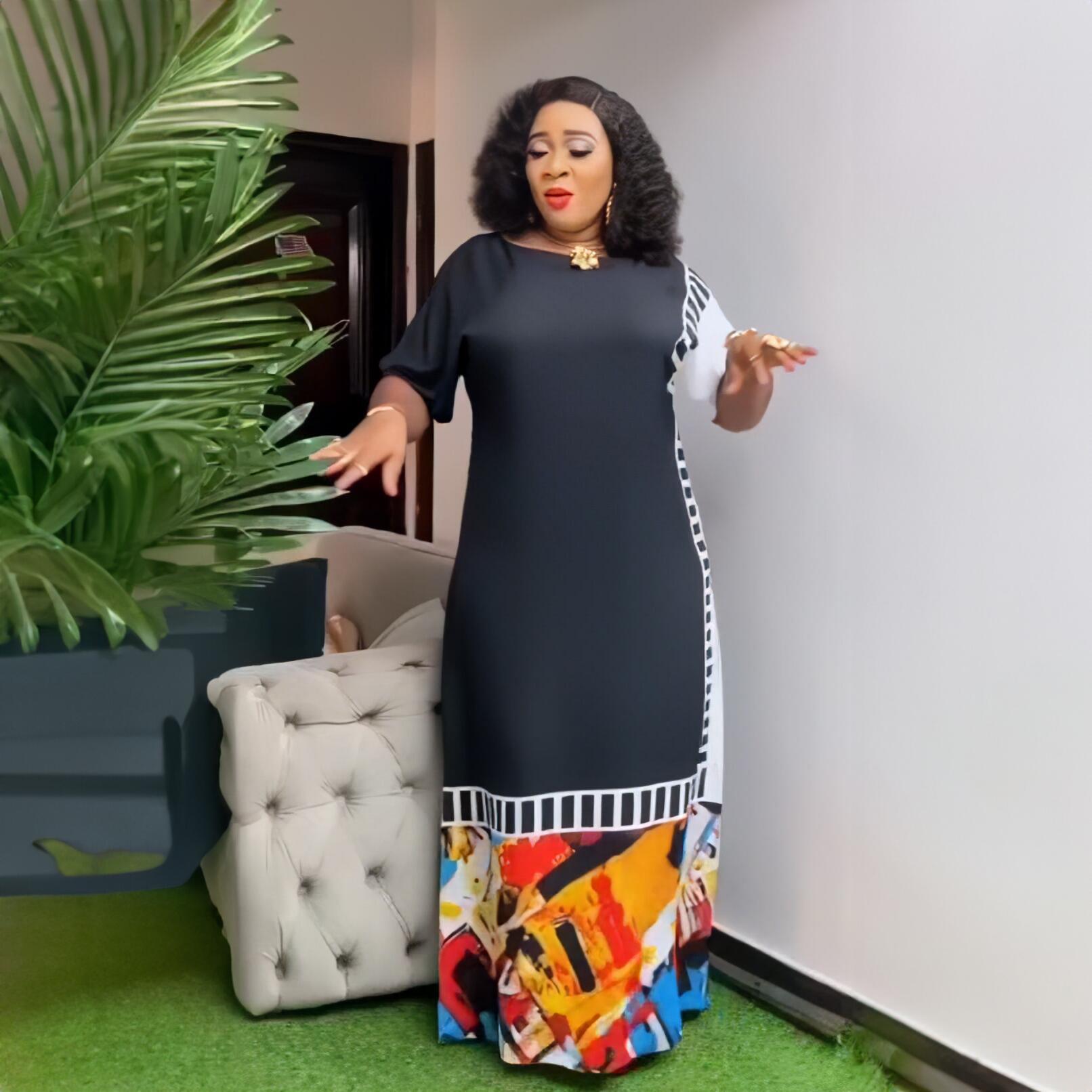 Внешняя торговля Африканское женское платье, соответствие цветов, граффити, разрез, цифровая печать, эластичные римские трансграничные поставки