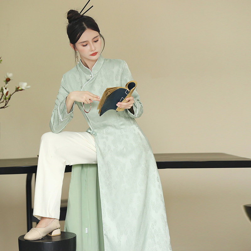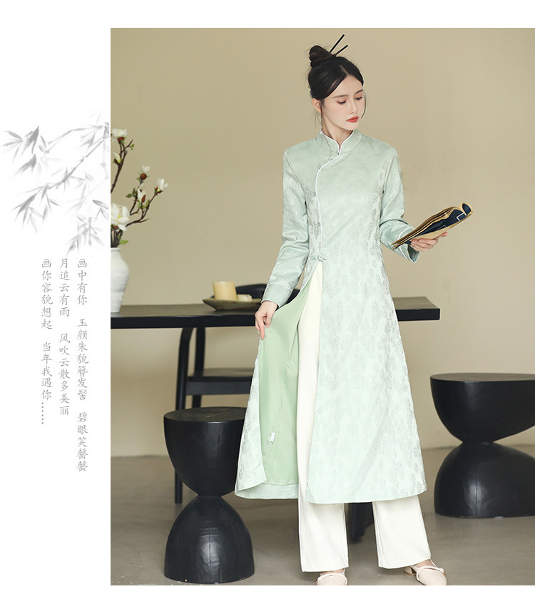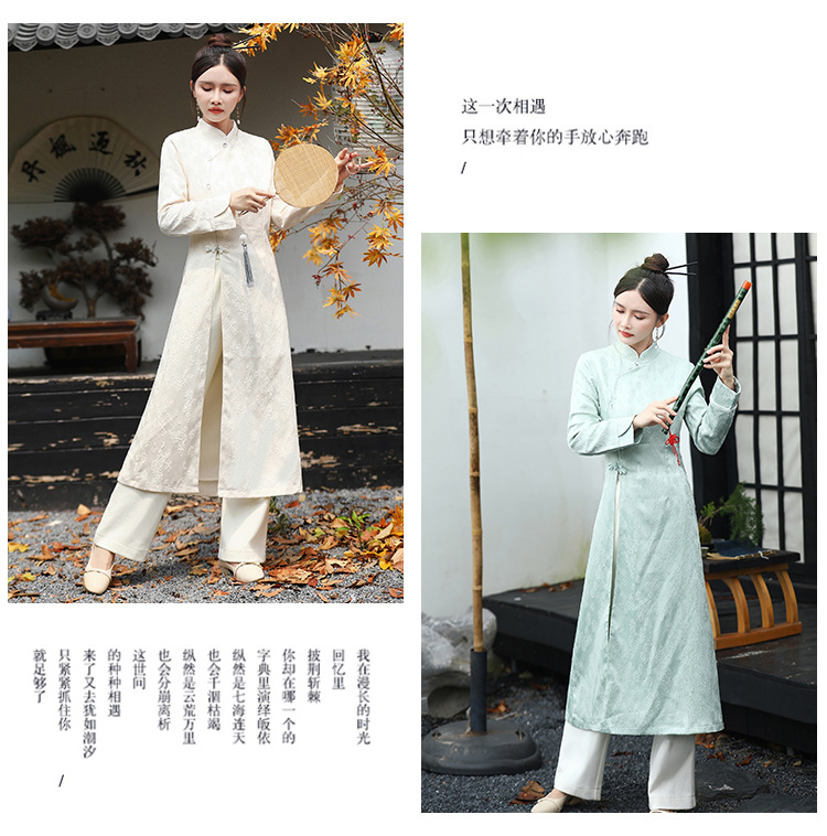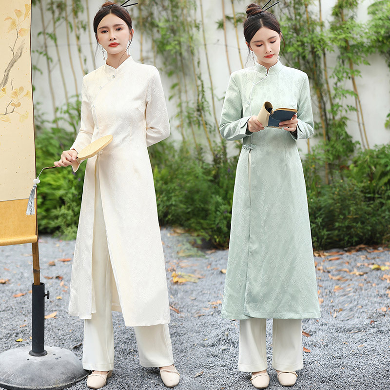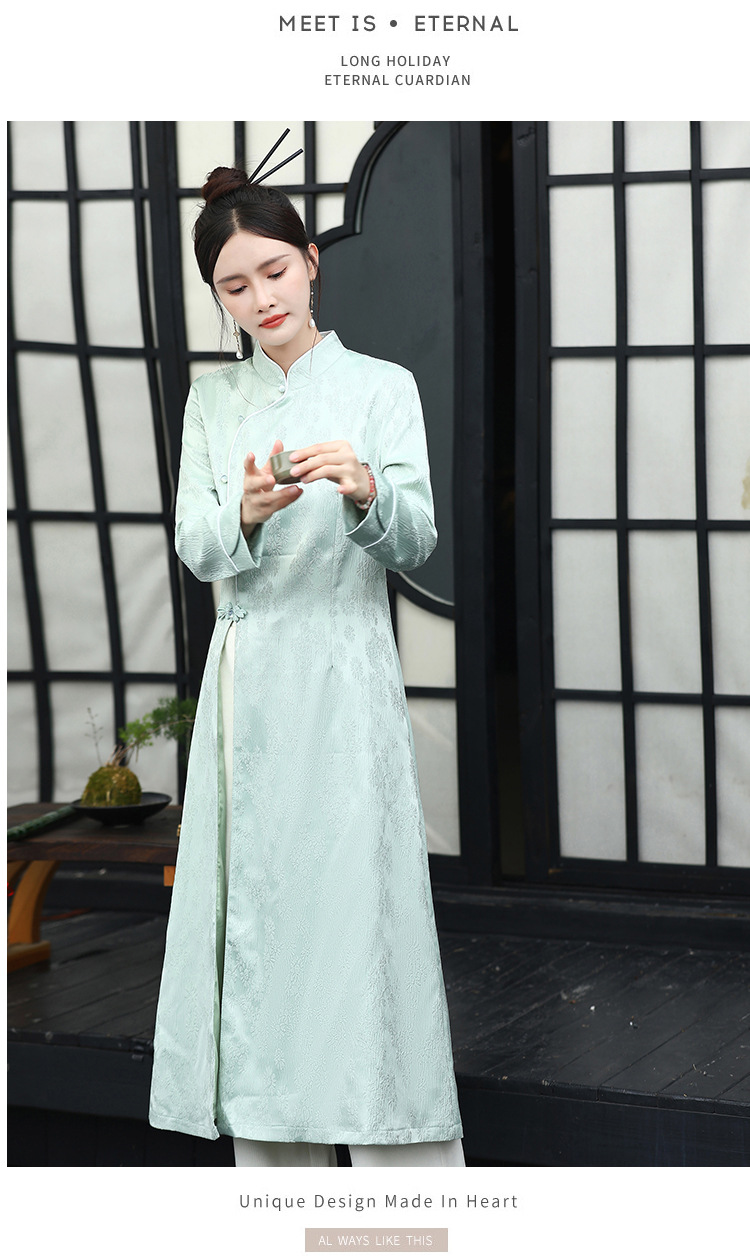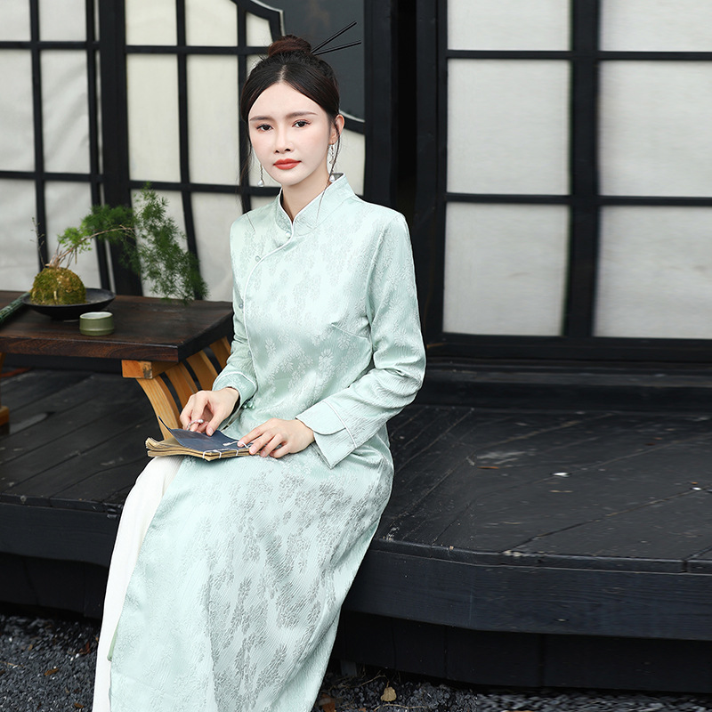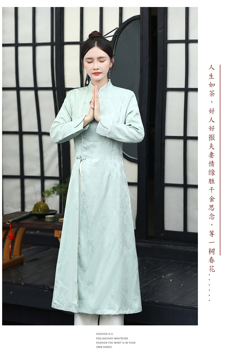 9664 Новый китайский дзен-Чонсам женский костюм рабочая одежда Hanfu Guofeng чайная одежда художника чайная одежда женская весна и осень