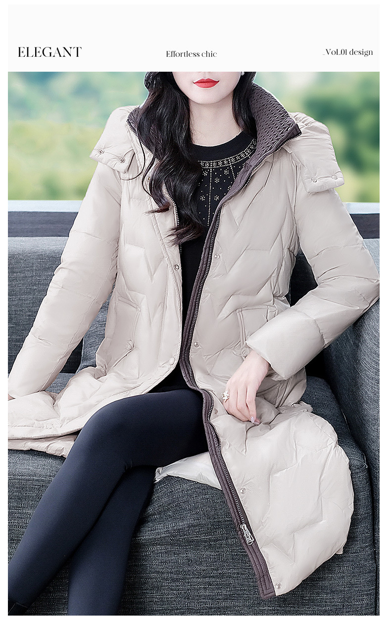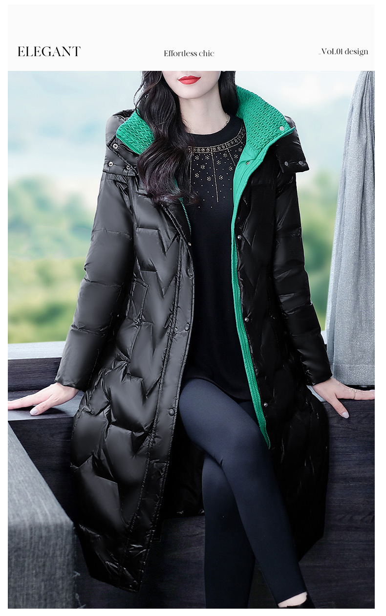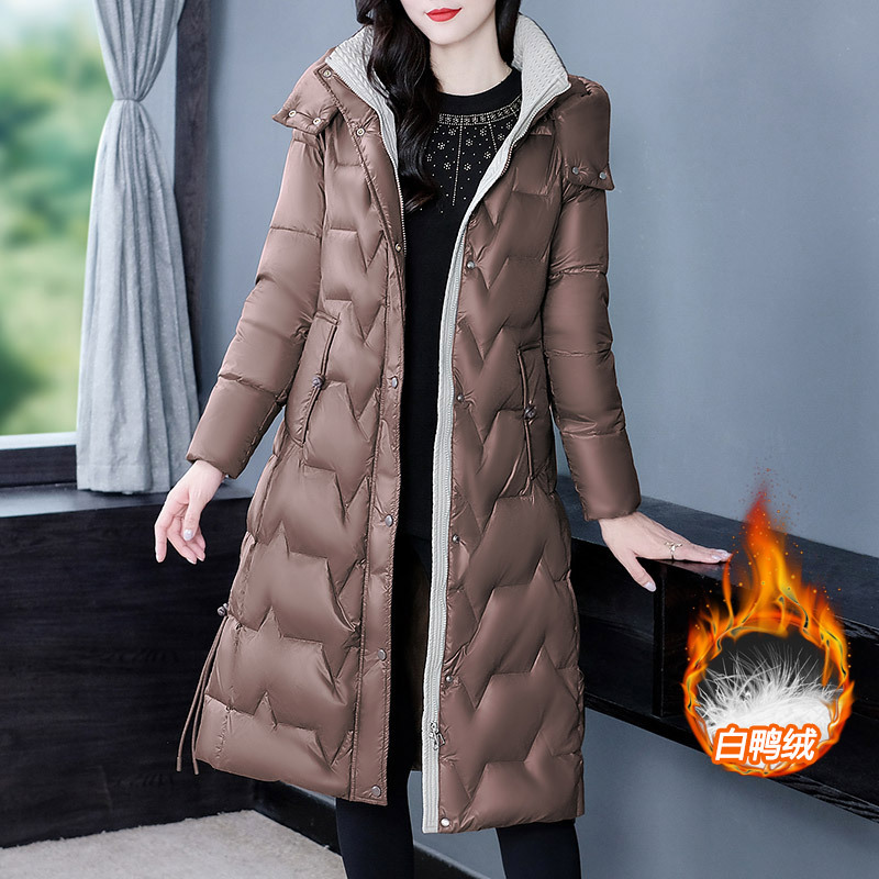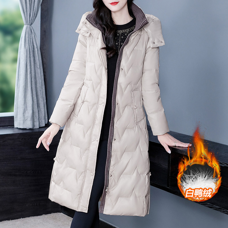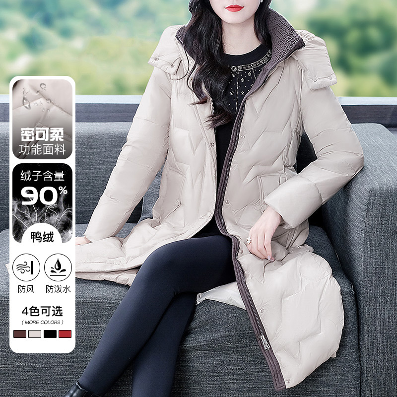 Осенний утолщенный пуховик, пушистый теплый белый утиный пух 90 лет, длинная куртка контрастного цвета, взрывами, женская одежда для среднего и пожилого возраста