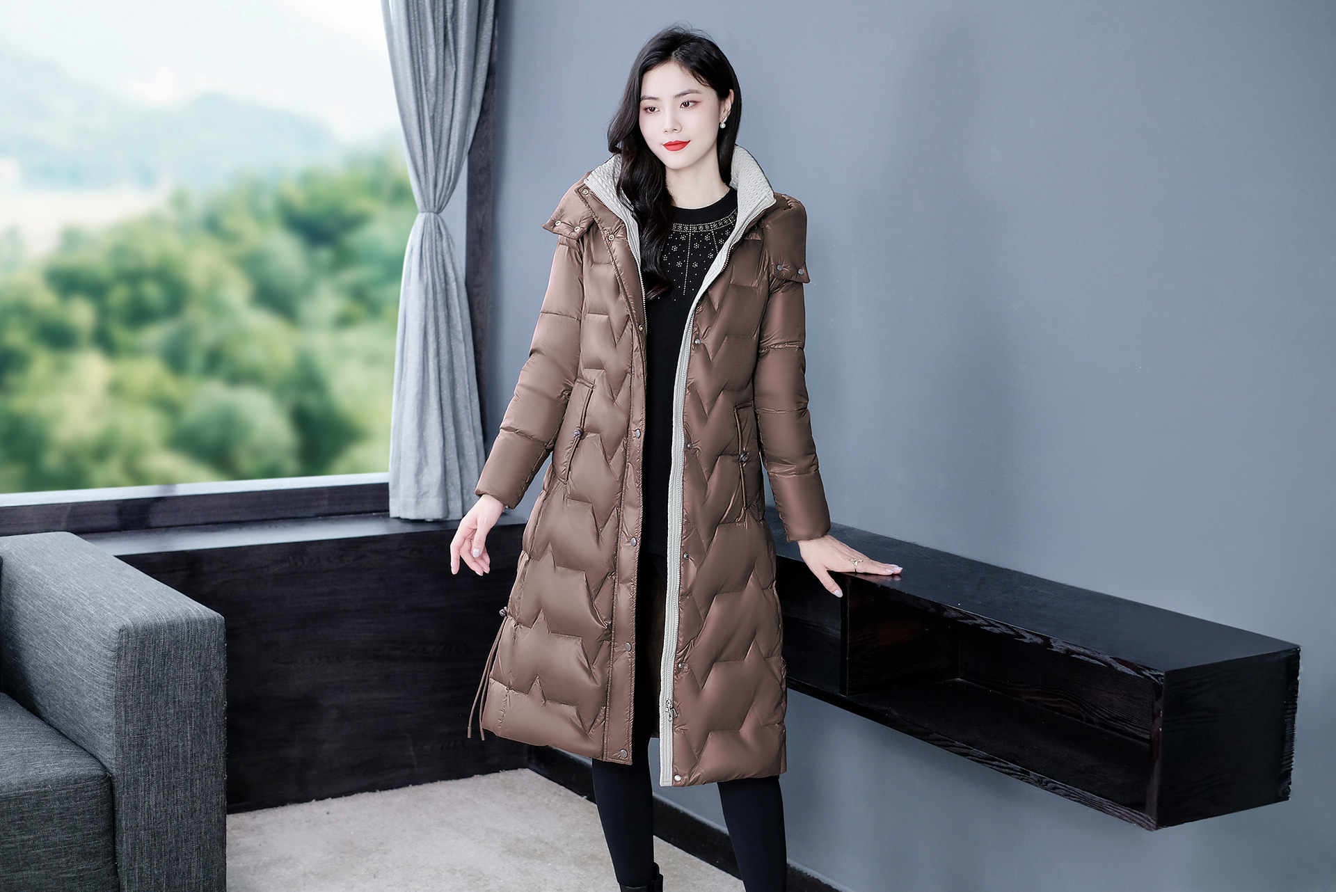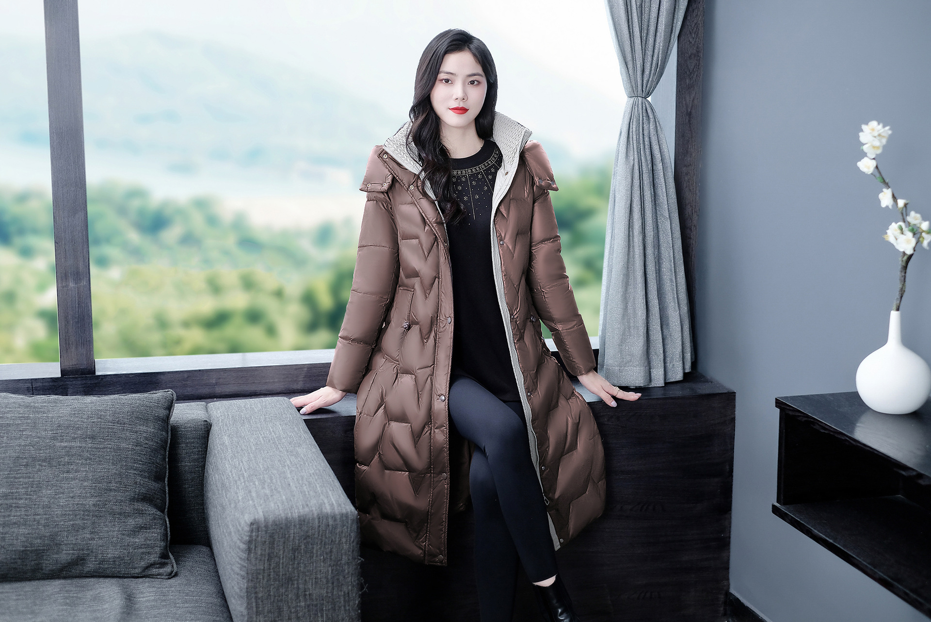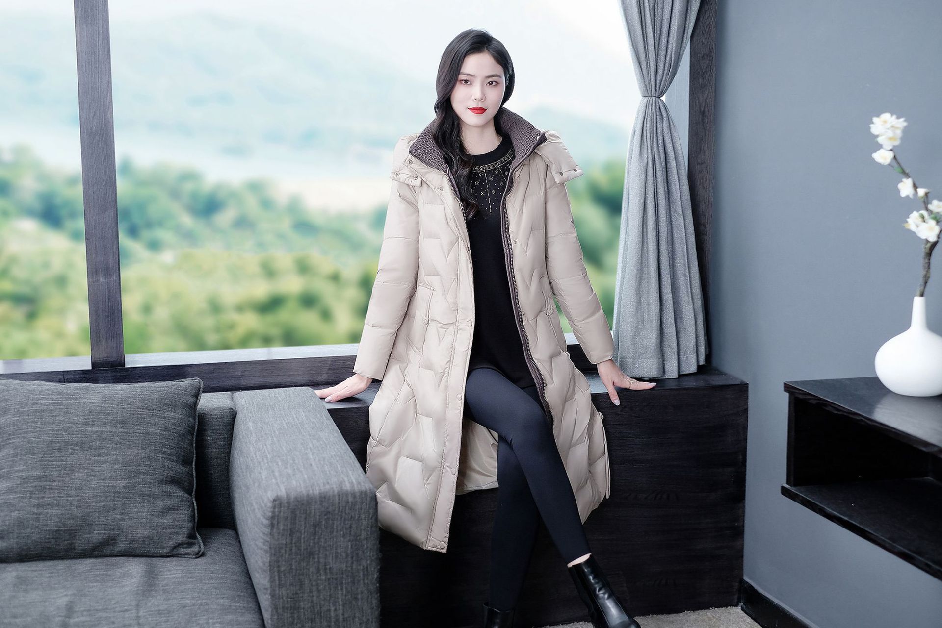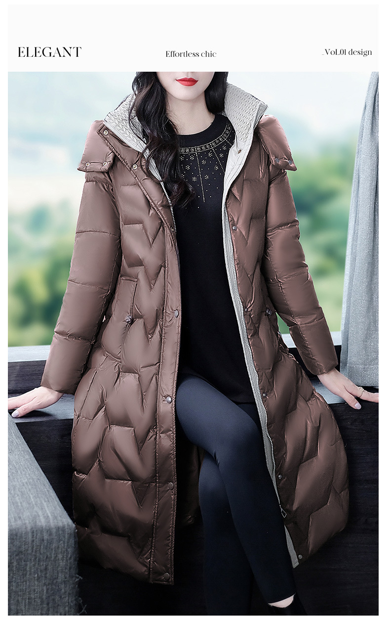 Осенний утолщенный пуховик, пушистый теплый белый утиный пух 90 лет, длинная куртка контрастного цвета, взрывами, женская одежда для среднего и пожилого возраста