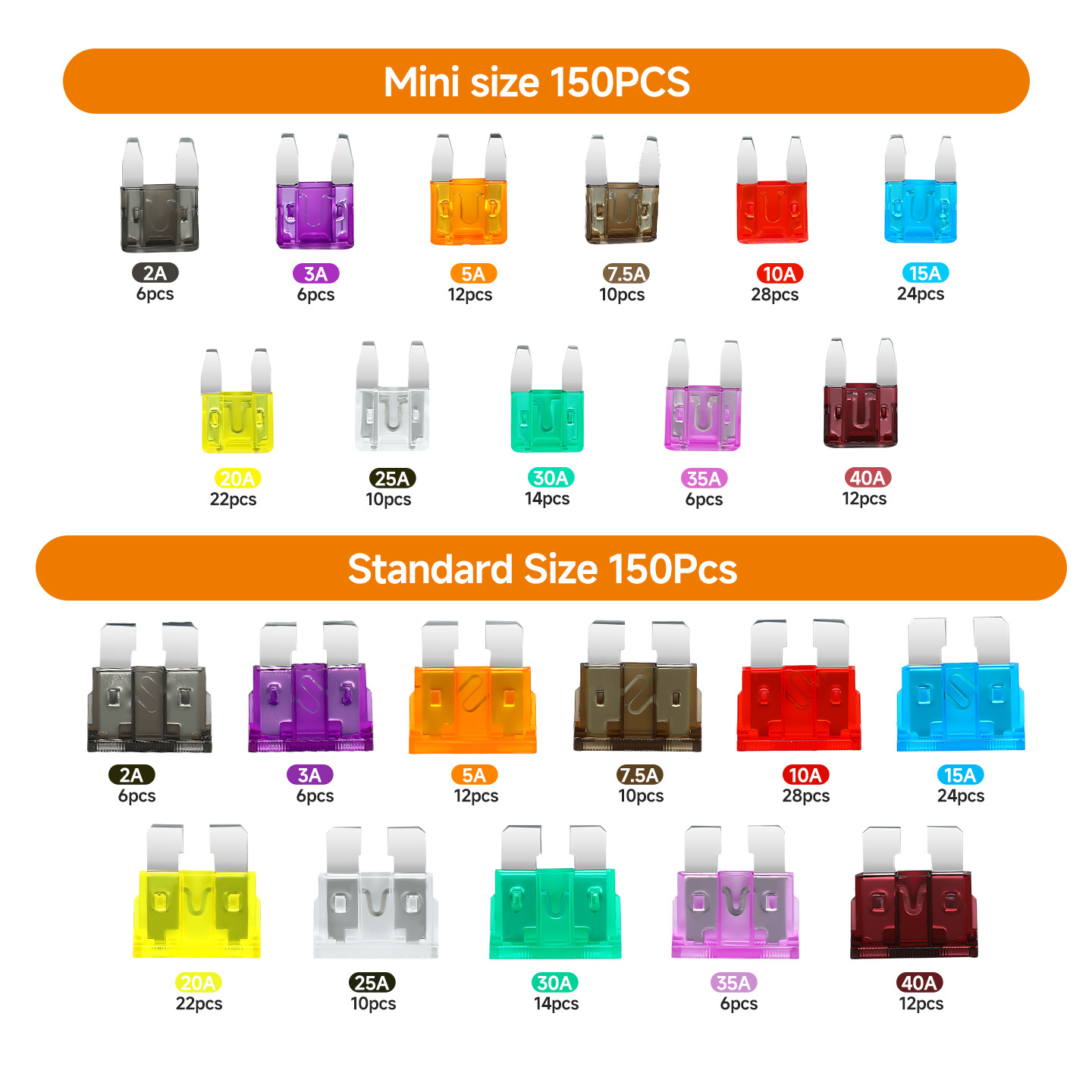 300 шт. автомобильных лезвийных предохранителей 2А-40А, средние и малые предохранители для автомобилей, хит продаж на международном рынке