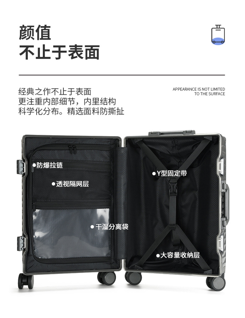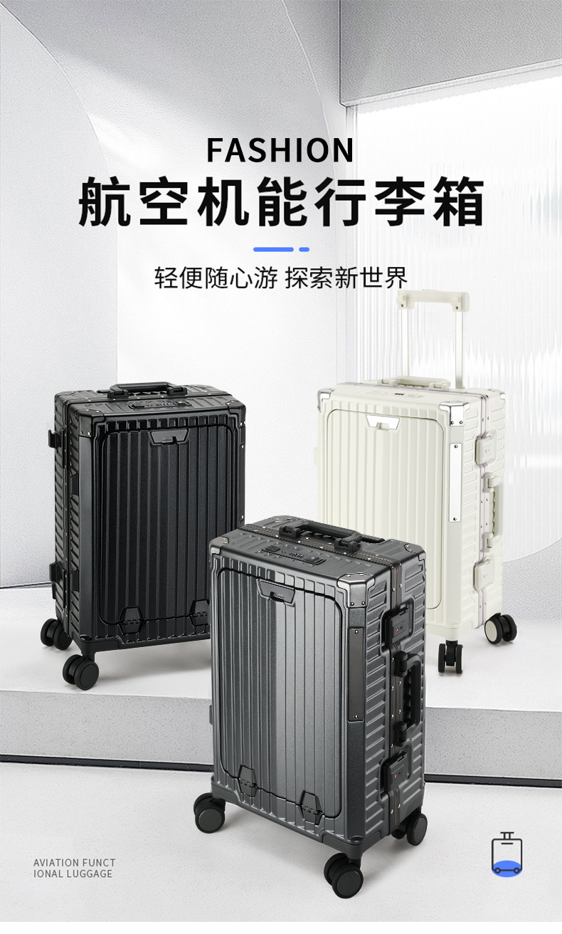 Многофункциональный передний открывающийся багаж из ПК алюминиевая рама 20-дюймовый посадочный чемодан с паролем перезаряжаемый чемодан на колесиках оптом