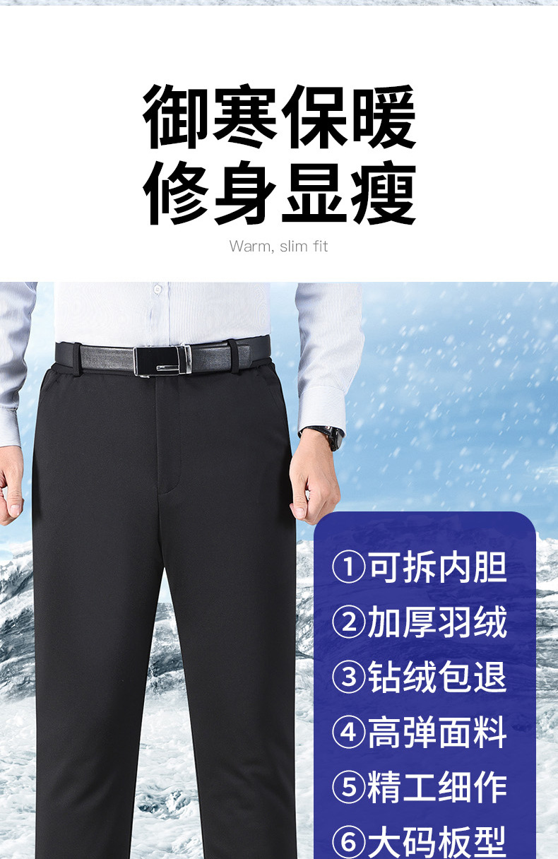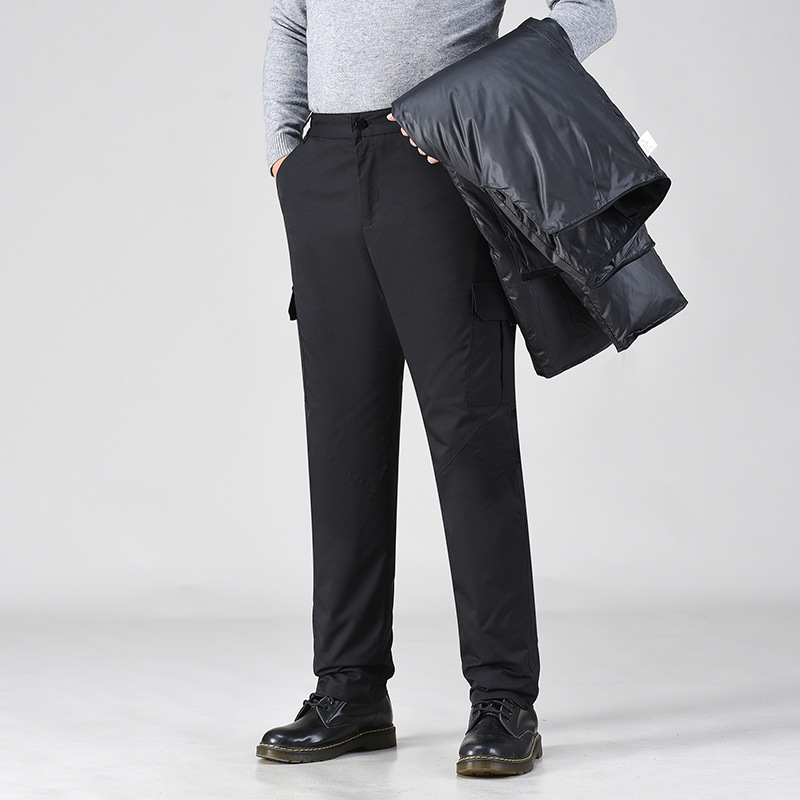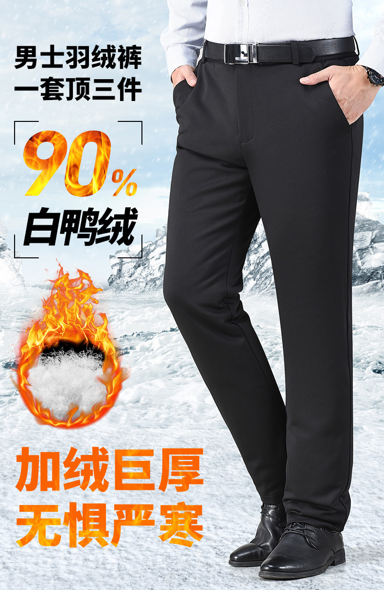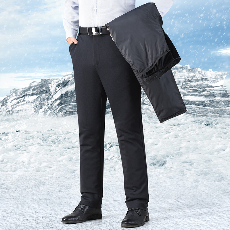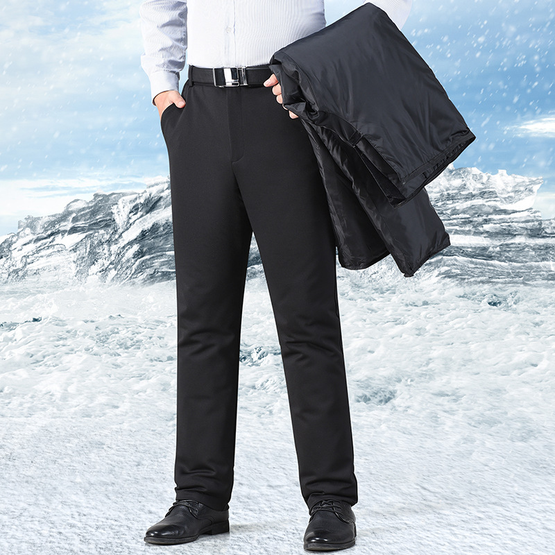 Мужские пуховые брюки среднего и пожилого возраста с высокой талией и съемной подкладкой, мужские хлопковые брюки, деловая повседневная утолщенная теплая верхняя одежда, большой размер