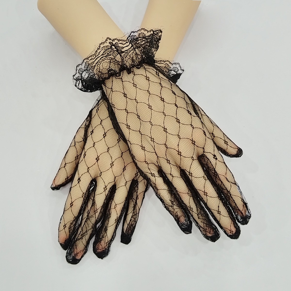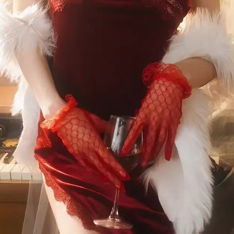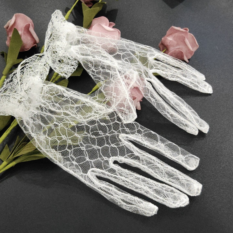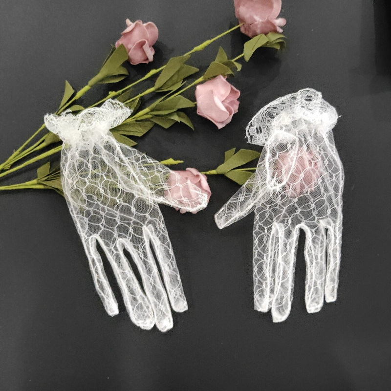 Оптовая Белый Банкетный Короткие Перчатки Свадебное Платье Кружева Сетка Вечернее Чаепитие Лолита Перчатки