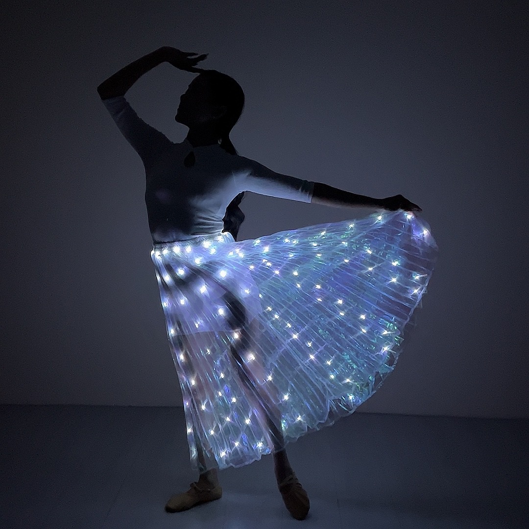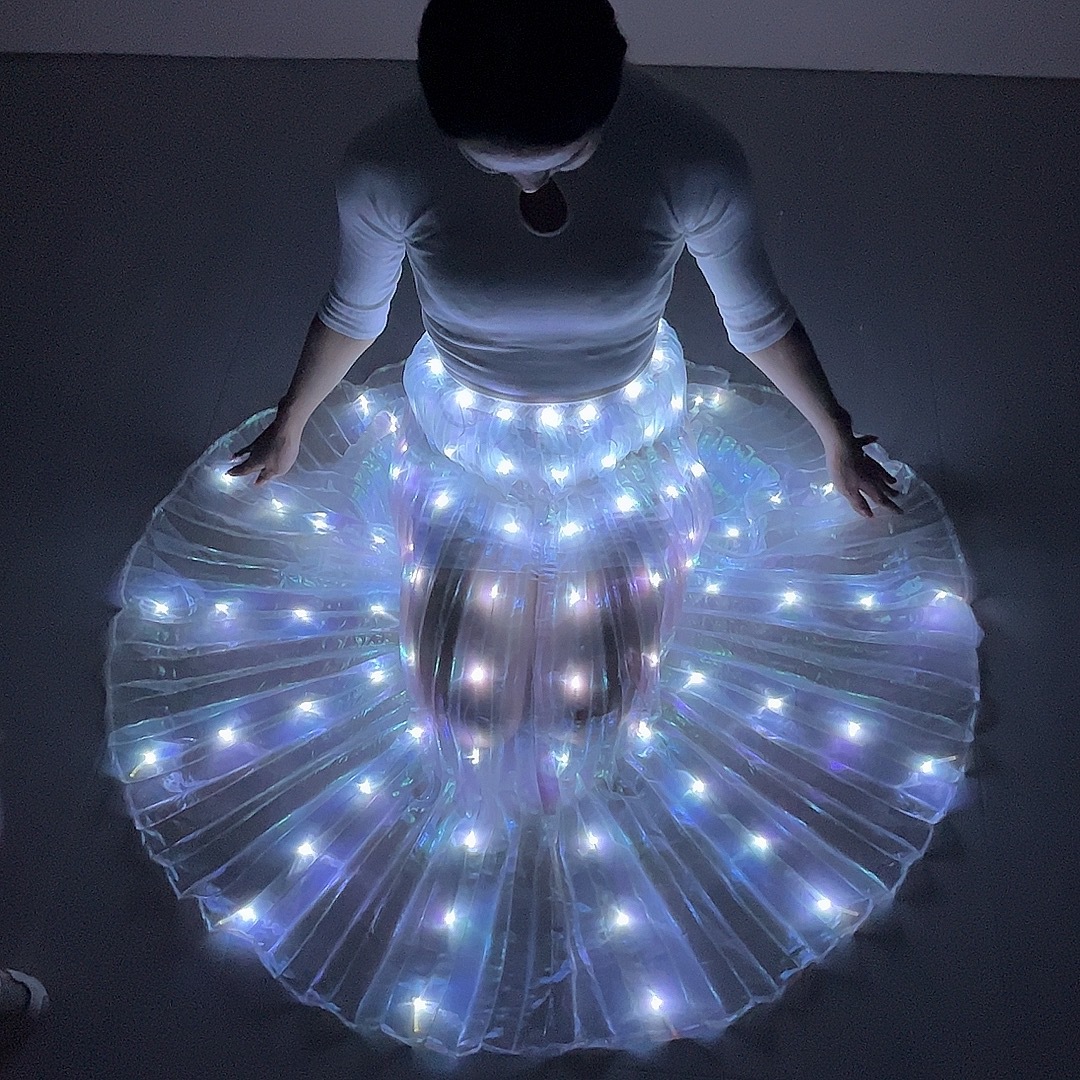 Светящаяся юбка с LED-подсветкой, белая, перезаряжаемая, с широким подолом, реквизит для сценических выступлений, одежда для танца живота, европейский и американский стиль, сексуальная