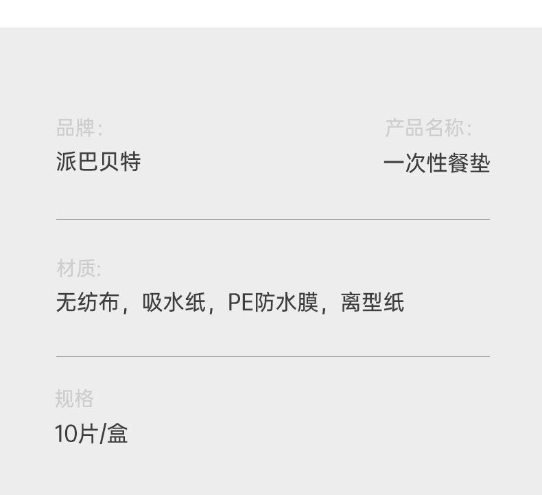 Pie Babe Одноразовые салфетки для коврика для стола Водонепроницаемая подушка для стола 10 шт. В упаковке 74889