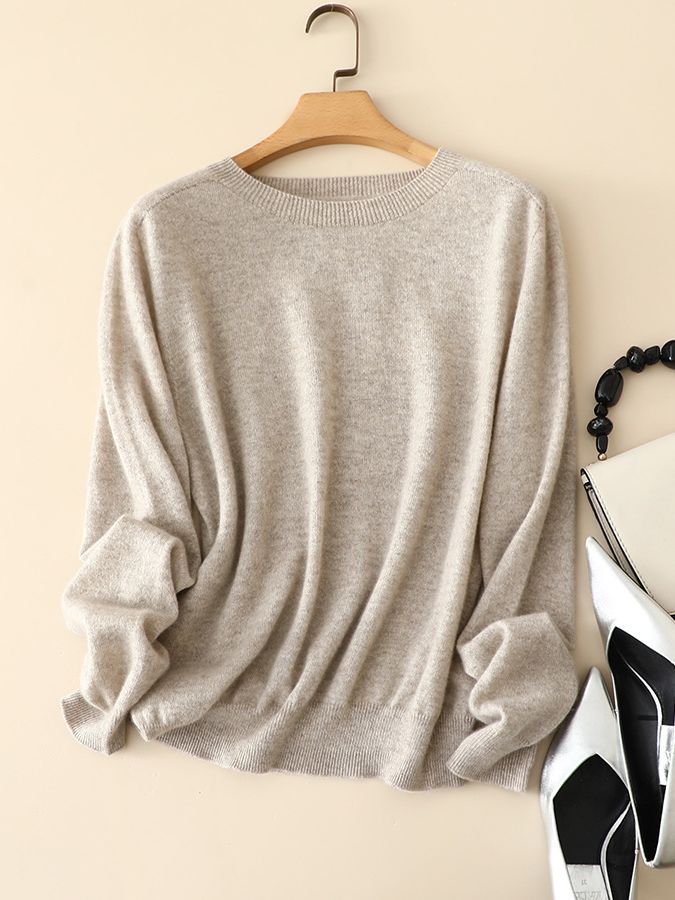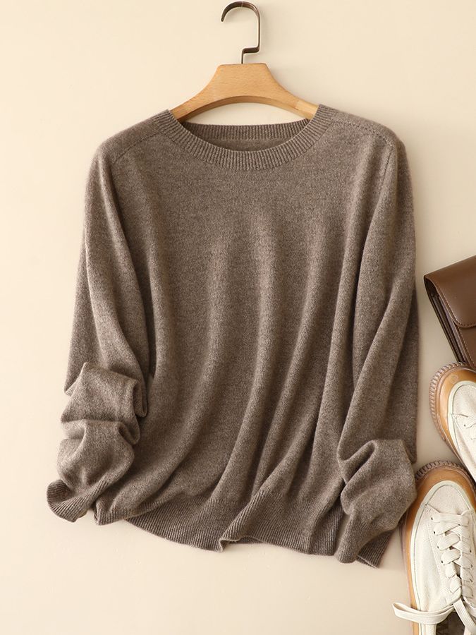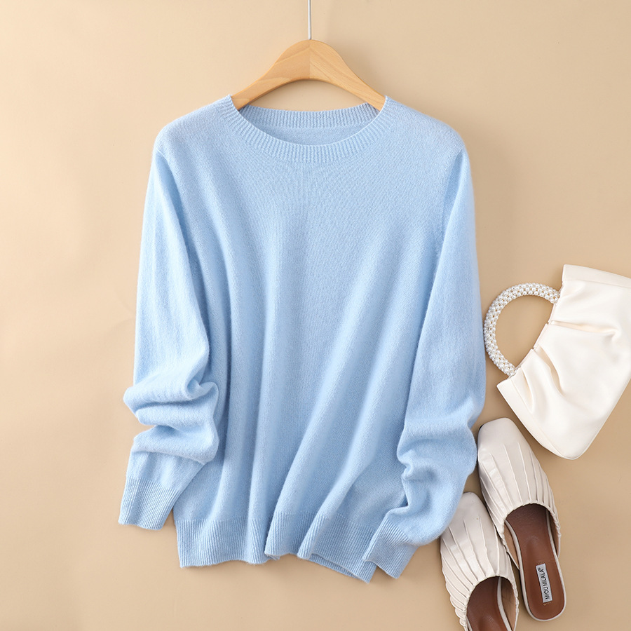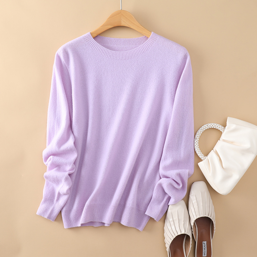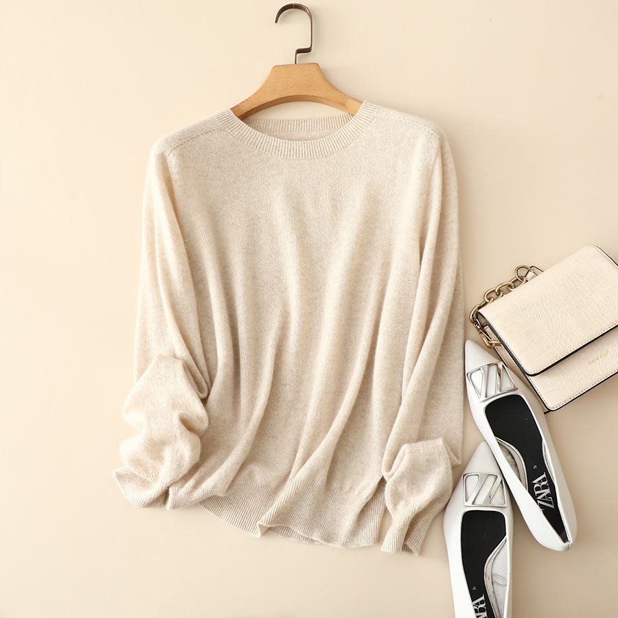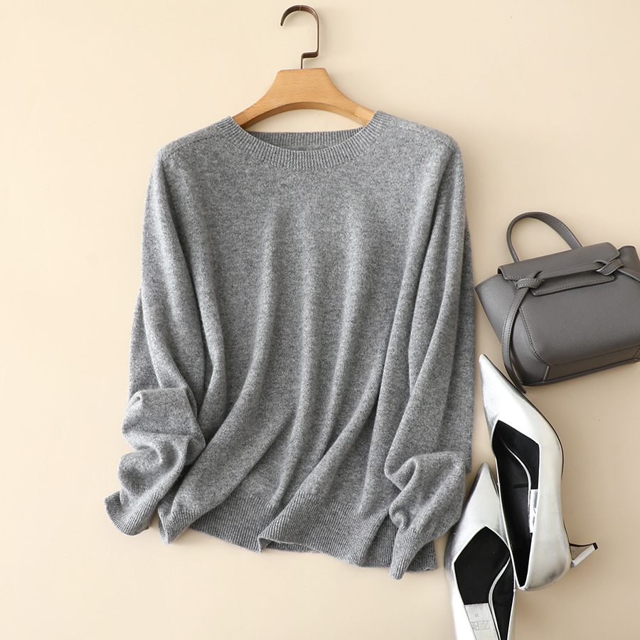 Роскошный мягкий, приятный для кожи бесшовный цельный свитер из 100 кашемира с круглым вырезом, женский осенне-зимний базовый свитер свободного кроя