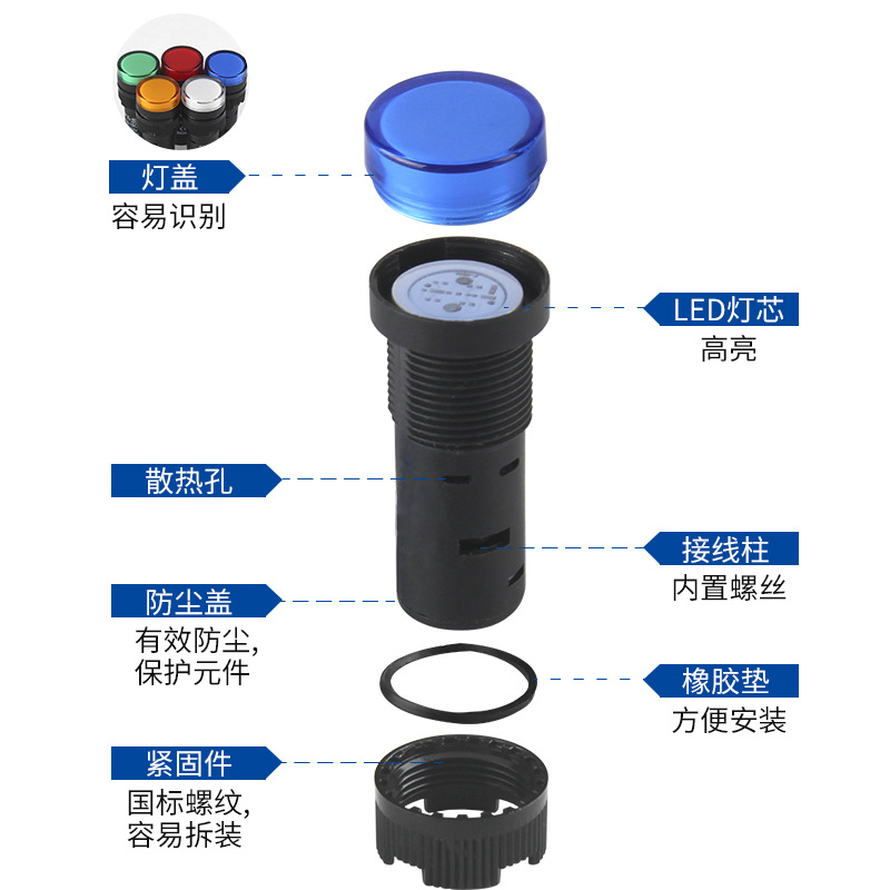 Красный AC220V (16 мм с открытыми отверстиями); Красный DC12V (16 мм с открытыми отверстиями); Красный DC24V (16 мм с открытыми отверстиями); Зеленый AC220V (16 мм с открытыми отверстиями); Зеленый DC12V (16 мм с открытыми отверстиями); Зеленый DC24V (16 мм с открытыми отверстиями); Желтый AC220V (отверстие 16mm); Желтый DC12V (отверстие 16mm); Желтый DC24V (16 мм с открытыми отверстиями); Синий AC220V (отверстие 16mm); Синий DC12V (отверстие 16mm); Синий DC24V (отверстие 16mm); Белый AC220V (открытый 16mm); Белый DC12V (открытый 16mm); Белый DC24V (16 мм с открытыми отверстиями)