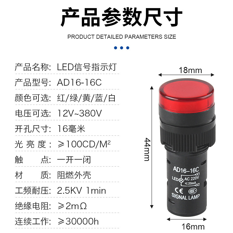 AD16-16C 16MM Индикатор сигнала LED12V 24V 220V 380V красный желтый зеленый Индикатор питания