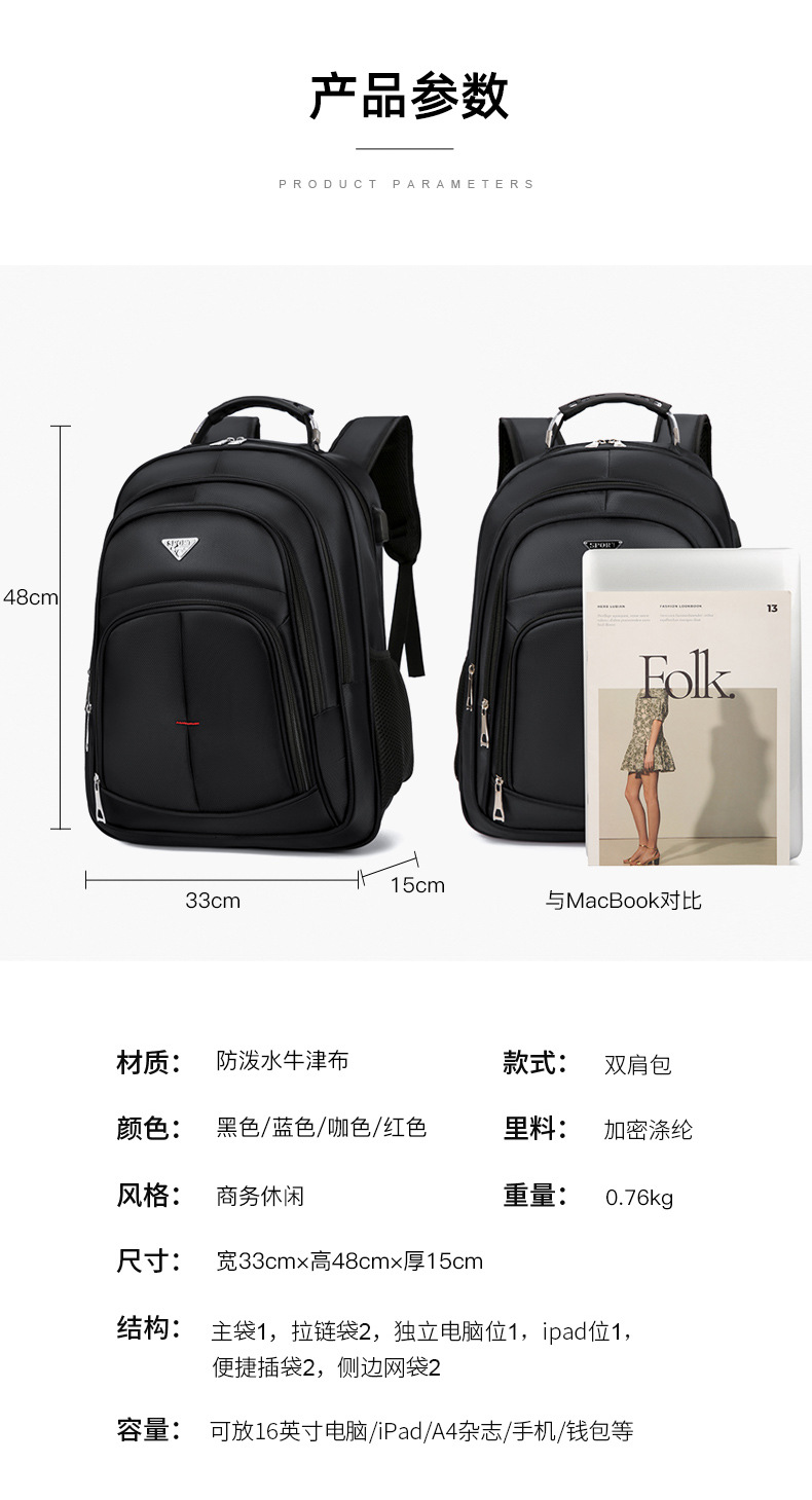 Трансграничные 2024 новые повседневные дикие сплошные мужские сумки на плечо большой емкости анти-брызги Оксфорд ткань компьютерная сумка