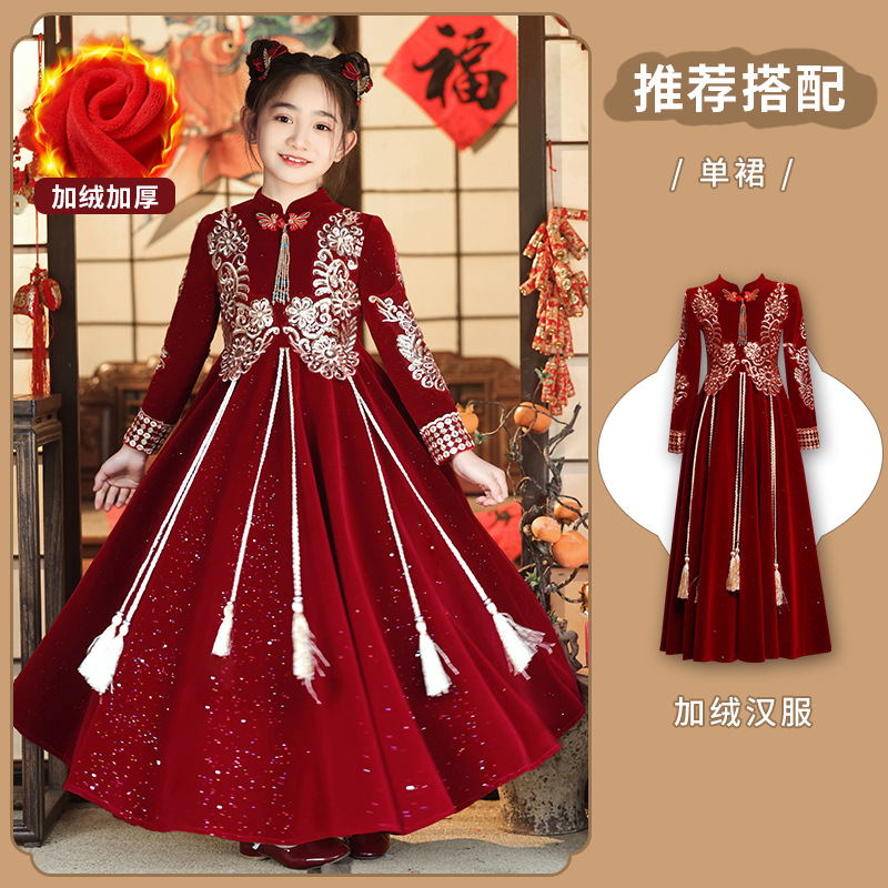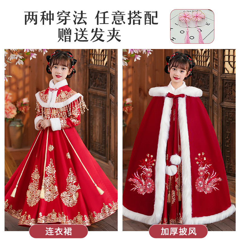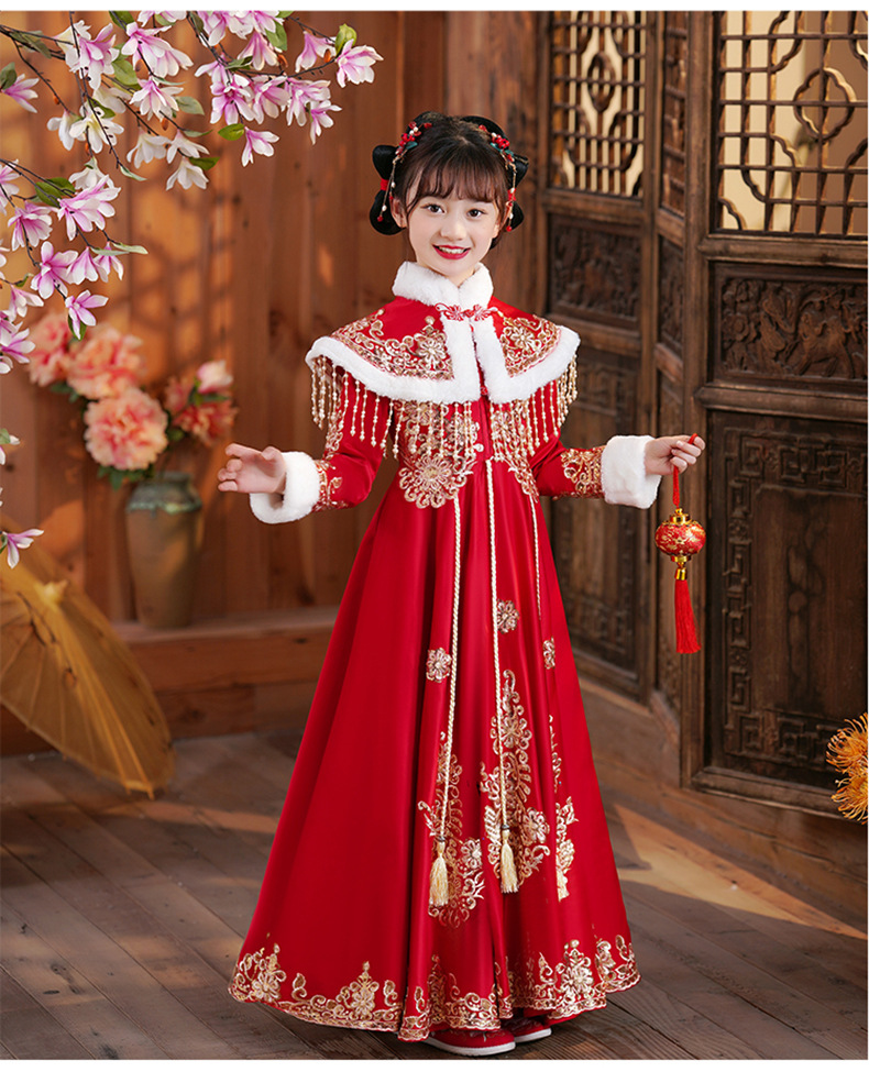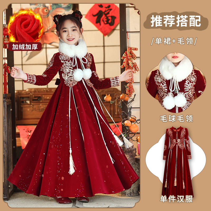 Новинка 2026: Зимний комплект для девочек в стиле принцессы Ханьфу, праздничный наряд на Новый год, зимний костюм Тан, праздничная одежда.