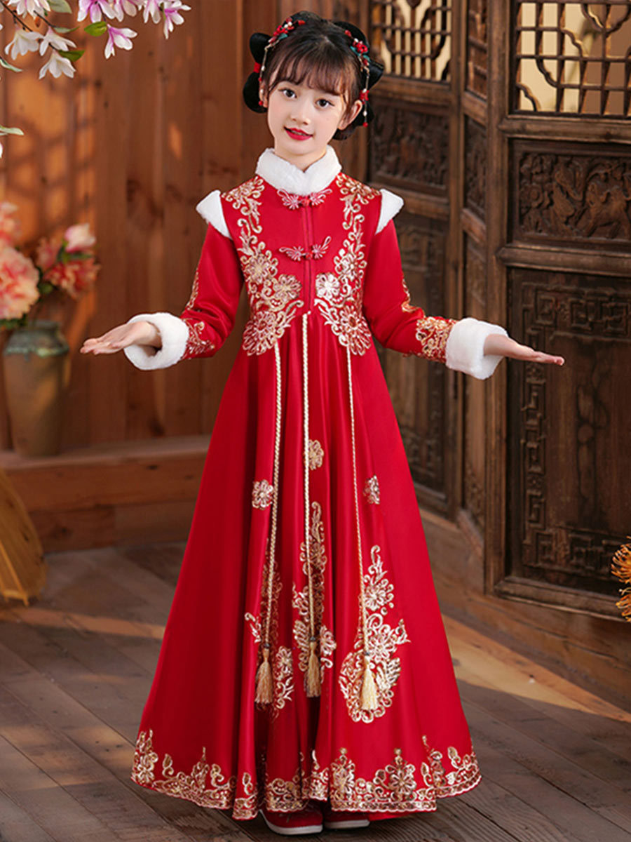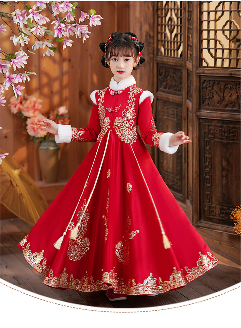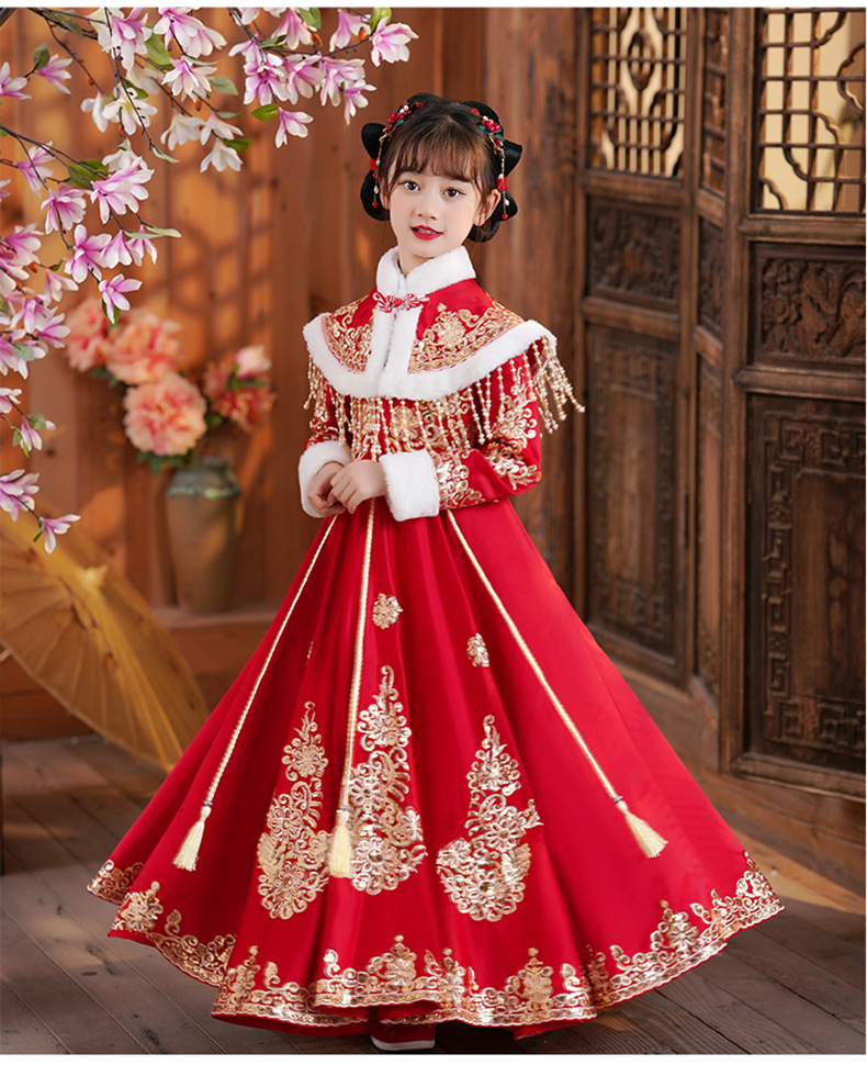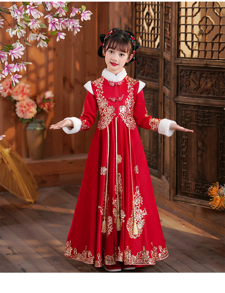 Новинка 2026: Зимний комплект для девочек в стиле принцессы Ханьфу, праздничный наряд на Новый год, зимний костюм Тан, праздничная одежда.