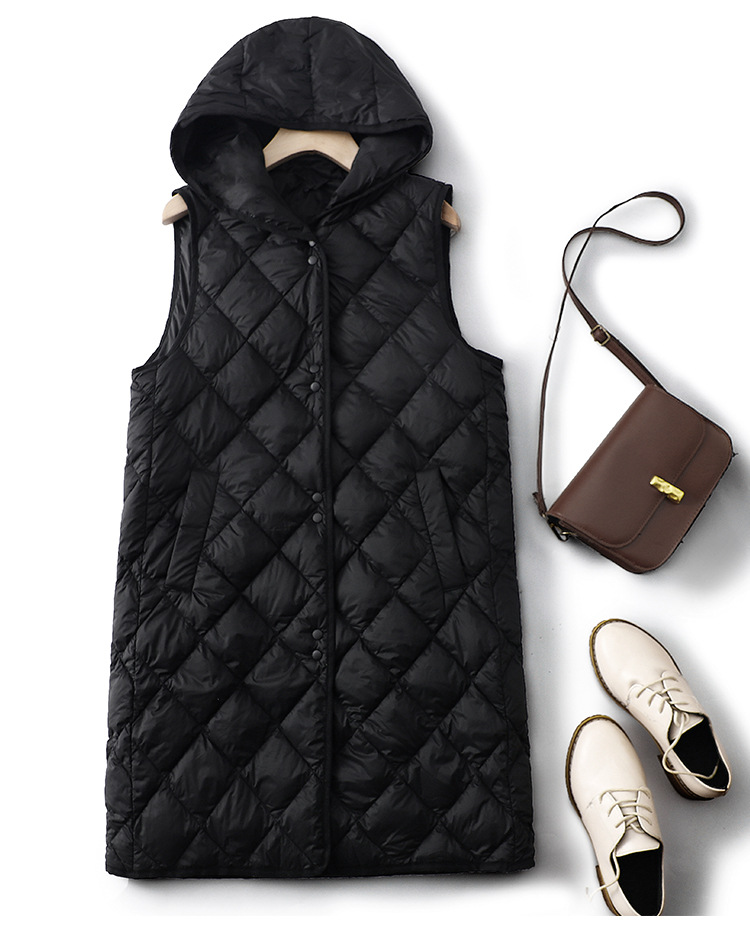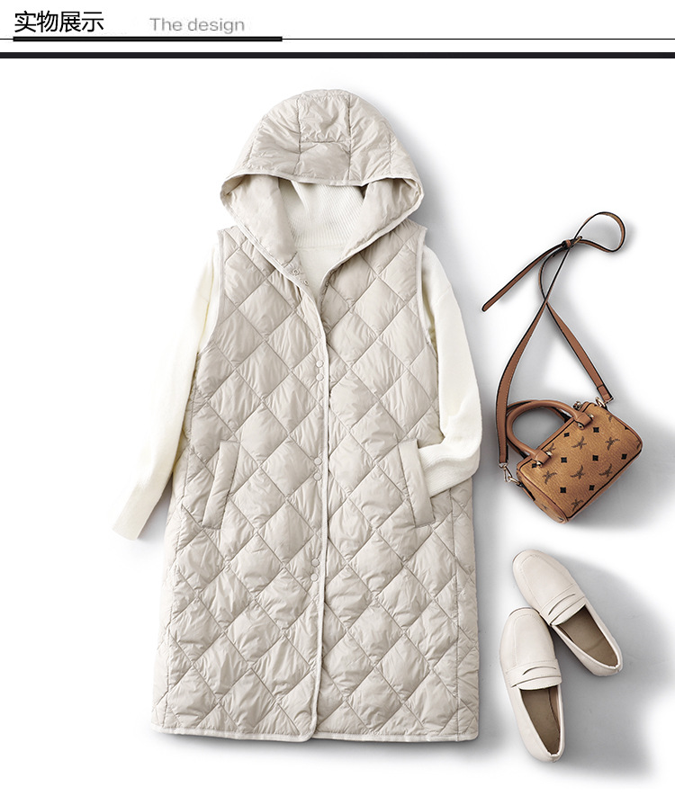Реальный снимок новой зимней свободной и тонкой жилетки с капюшоном 2024 года, жилет средней длины, куртка, жилет для женщин 1505 #