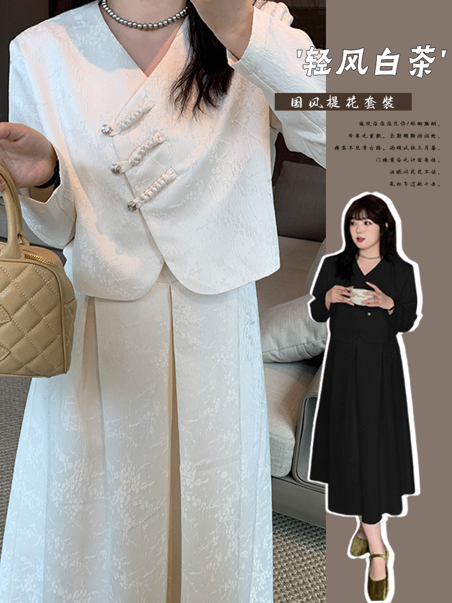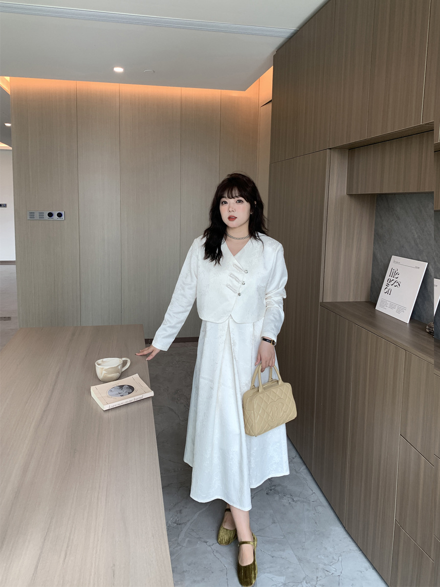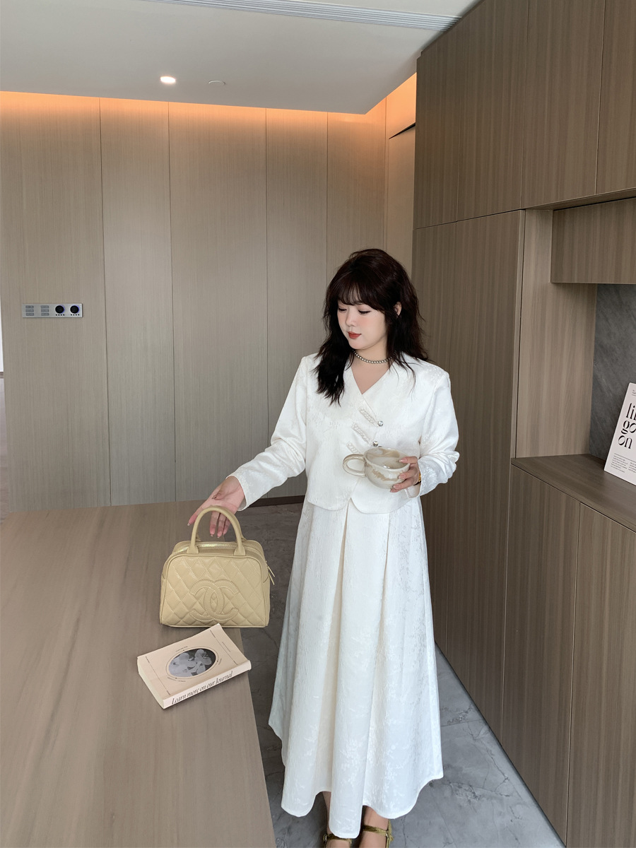 3352 Xuan Chen, женский осенний Новый Китайский Улучшенный костюм большого размера, куртка, юбка-слип, комплект из двух предметов