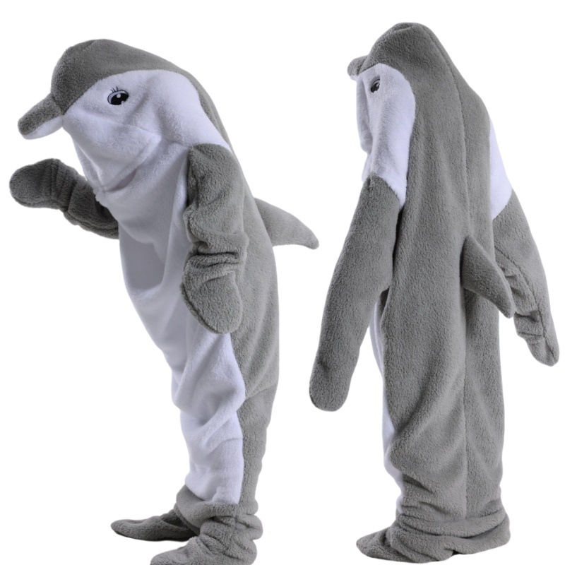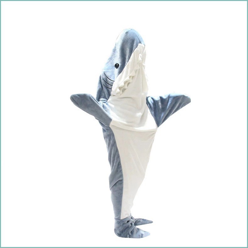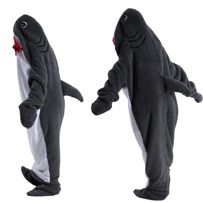 Трансграничное Новое одеяло с акулой для взрослых, супер мягкая фланелевая толстовка с капюшоном, спальный мешок, свободная цельная Пижама