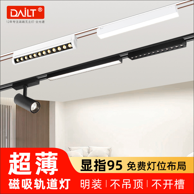Накладной магнитный трековый светильник, без потолка, без основного освещения, складной прожектор с решеткой, умное диммирование, трехцветная регулировка яркости