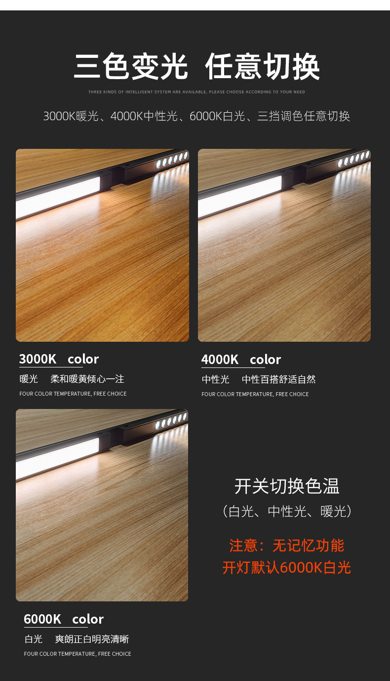 Черный; Белый; 3000K-теплый свет; 3500K-Теплый белый свет; 4000K-нейтральный свет; 6000K-Белый свет; Трехцветный свет (3000K/4000K/6000K)