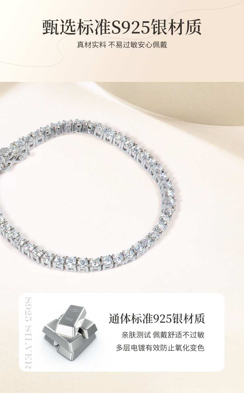 [Высокое качество] Теннисный браслет 3 мм из стерлингового серебра S925 с инкрустацией, в стиле лёгкой роскоши, с моассанитом, ювелирные изделия для трансграничной торговли
