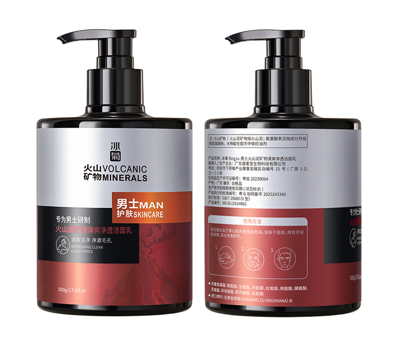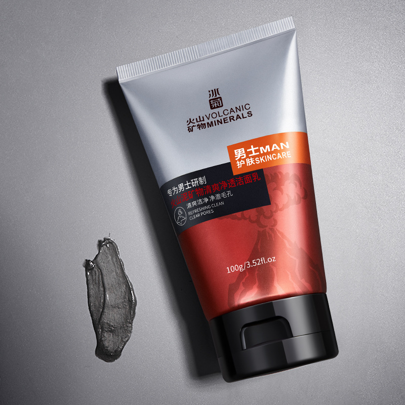 Мужское специализируется на вулканической грязь, очищающее и обезжиривающее очищающее средство, очищающее средство для лица с аминокислотами, мужской набор для ухода за кожей оптом на складе