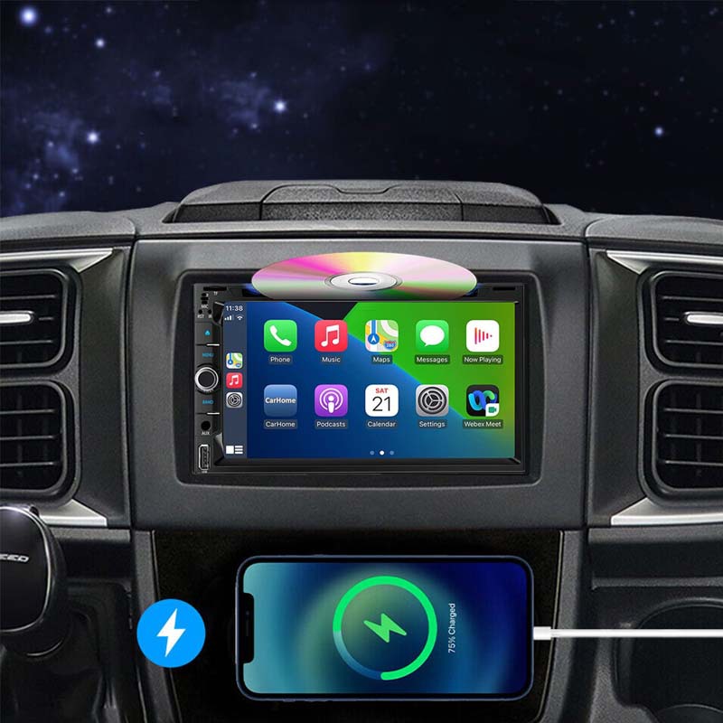 【媒体播放】双音车载收音机可作为DVD/CD播放器使用。用于汽车立体声的usb蓝牙适配器可以播放各种光盘格式的CD和DVD。触摸屏汽车立体声采用1080p,在紧凑的设计中体验接近高清的画质和扎实的声音。带有备用摄像头的汽车立体声还显示出微妙的色调和更平滑的颜色分级,从而产生生动自然的画面。