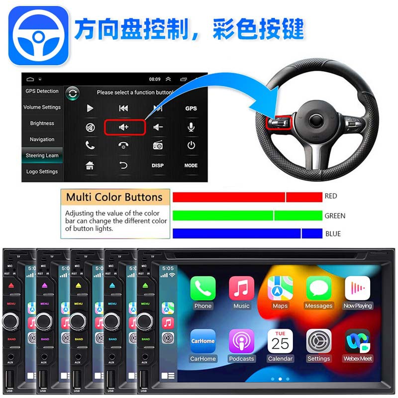 【CarPlay/Android Auto】与Apple CarPlay兼容的双音车载立体声,只需连接您的智能手机,即可访问地图导航、手机联系人、电子邮件、通知、音乐等。带蓝牙的汽车立体声具有最新的语音控制技术,允许您在智能语音助手的帮助下打电话、导航、播放音乐,同时让您的双手保持自由,以实现安全的驾驶操作!