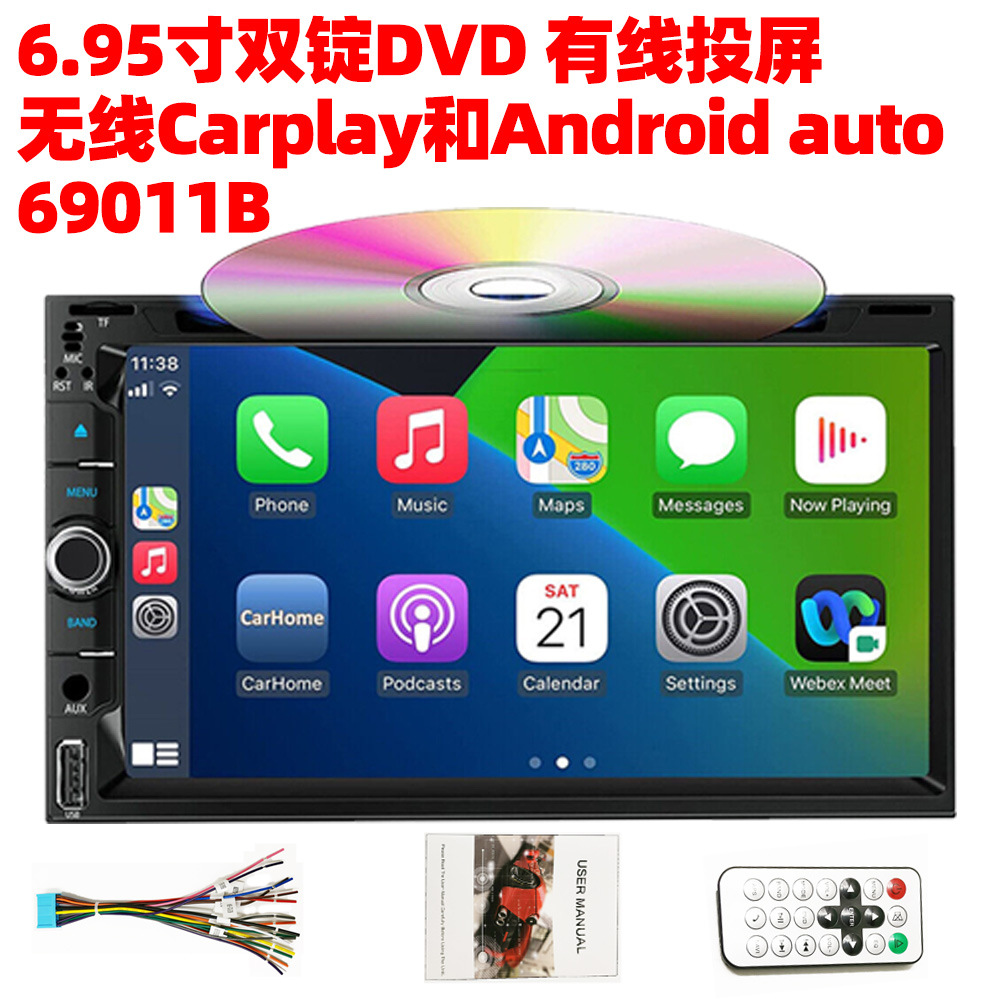 6,95-дюймовый двойной слиток мультимедийный DVD автомобильный навигационный плеер Bluetooth без рук беспроводной Carplay Android Auto