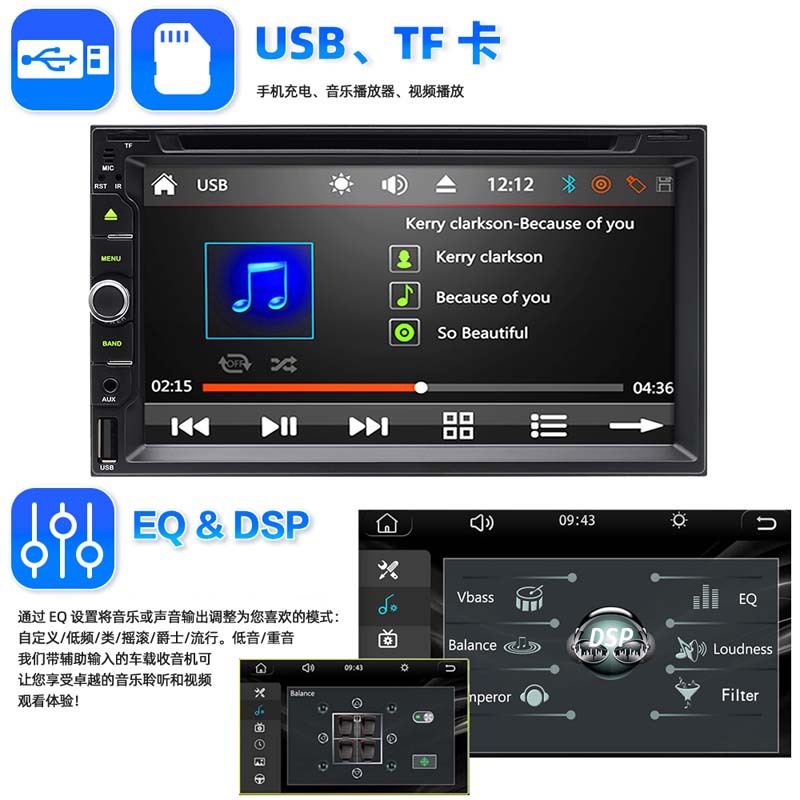 特色:RDS,触摸屏,均衡器