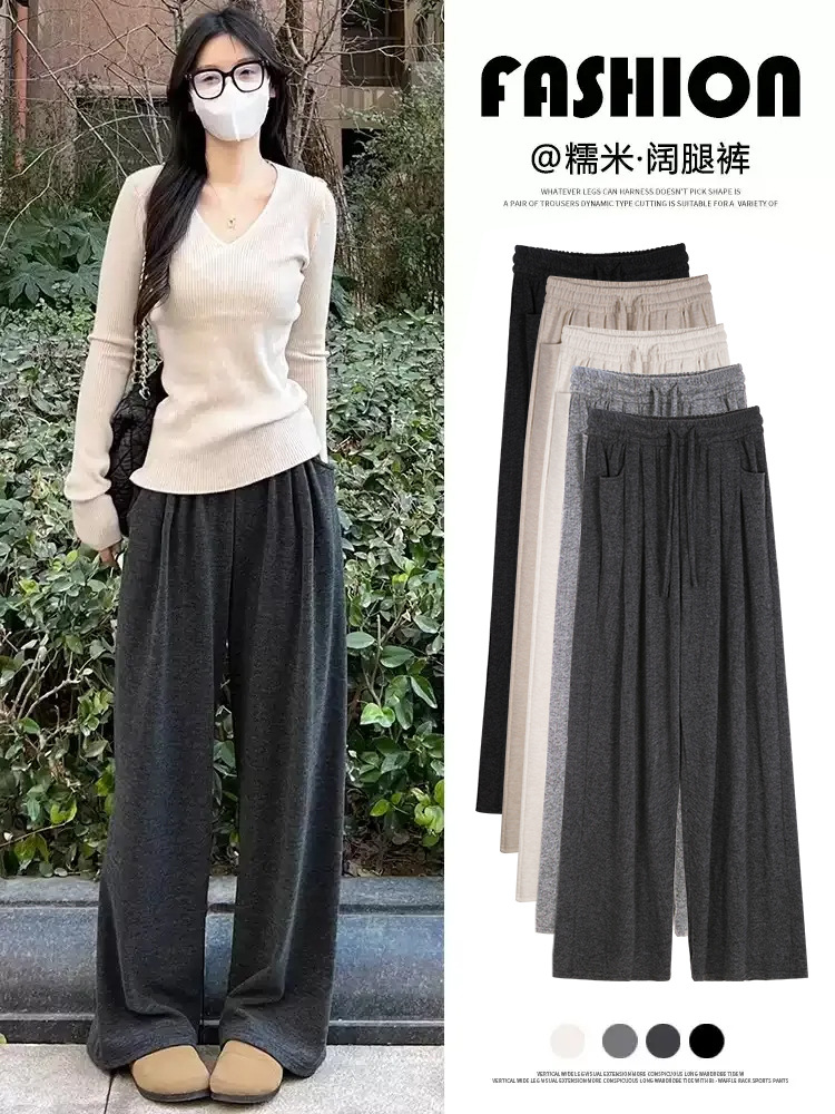 Серые брюки мочи для женщин, новинка 2026 года, весенний стиль, свободные, повседневные, прямые, узкие, широкие брюки-палаццо для невысоких.