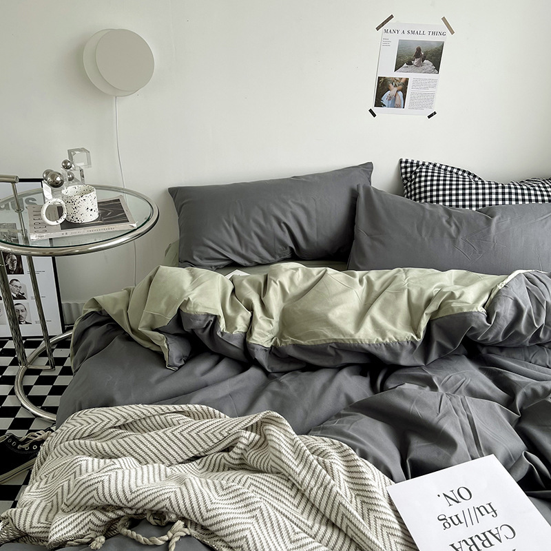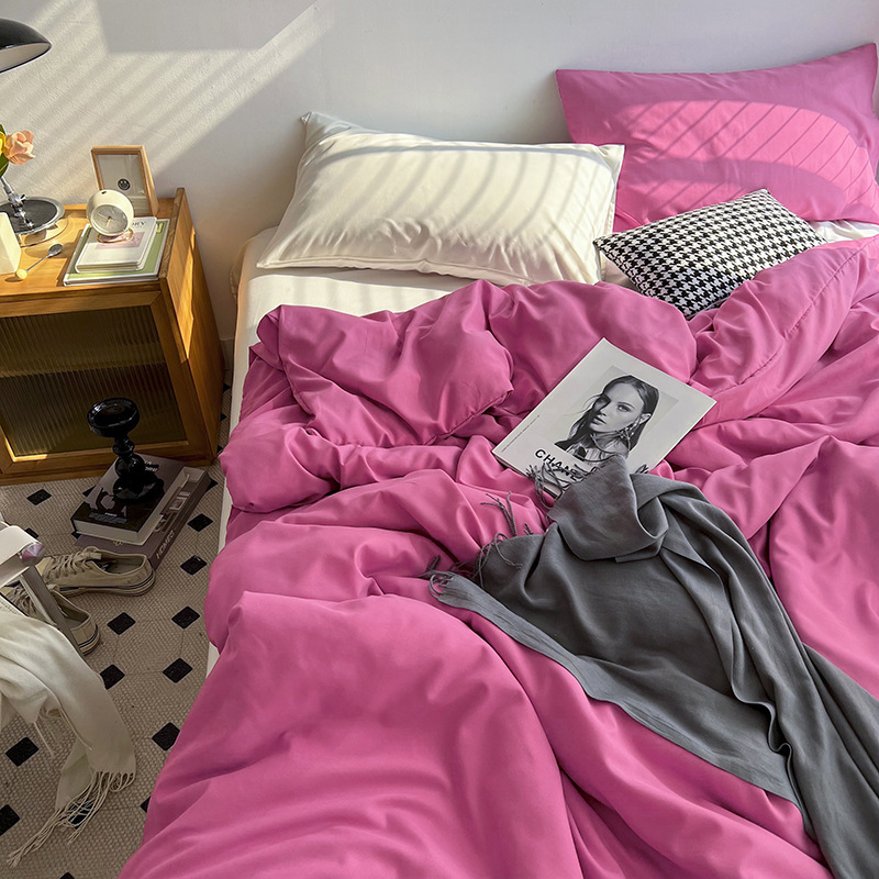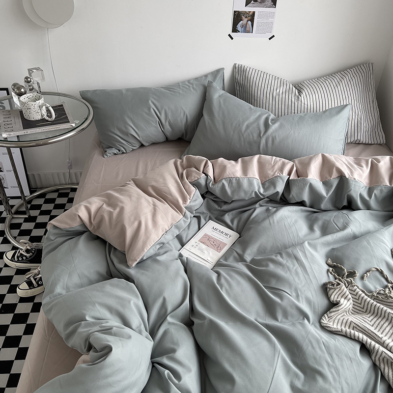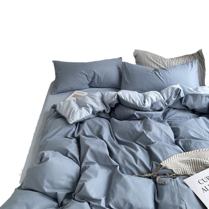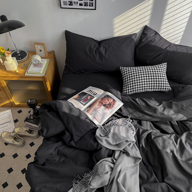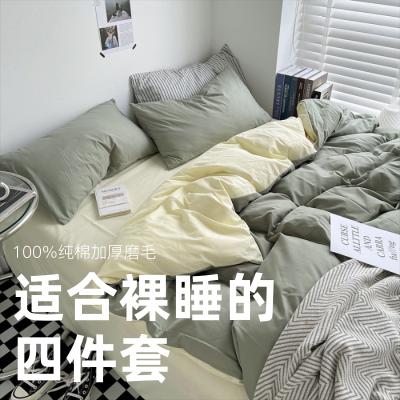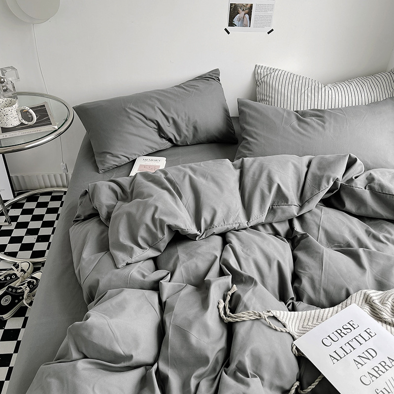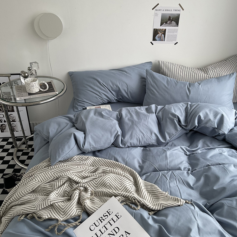 Постельный комплект из хлопчатобумажной ткани, однотонный, четырехпредметный, в японском стиле, простой, с начесом, оптом, для общежития, трехпредметный комплект