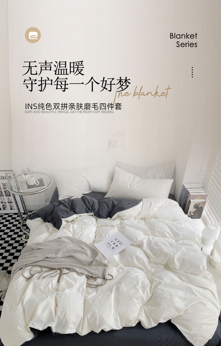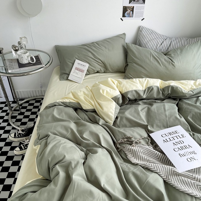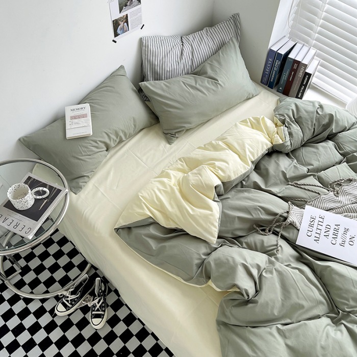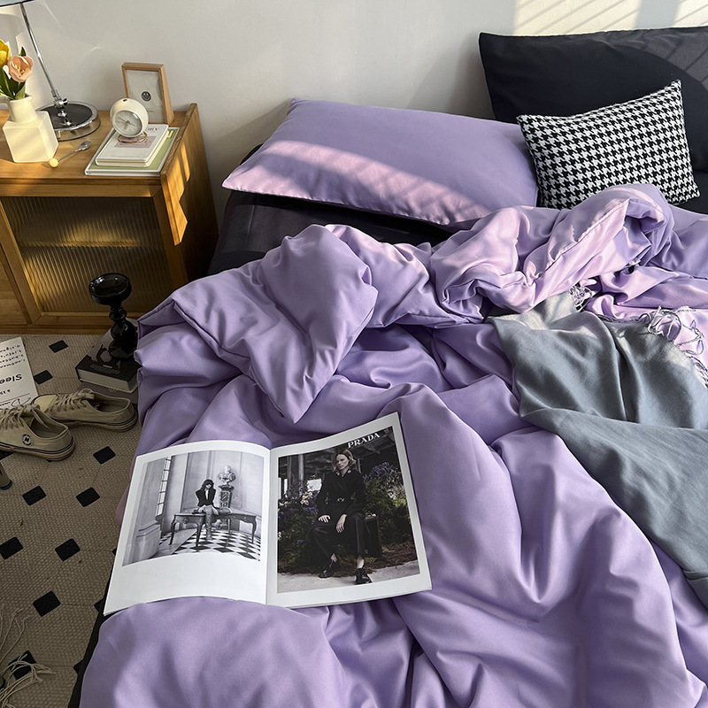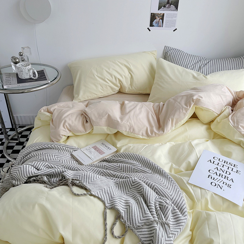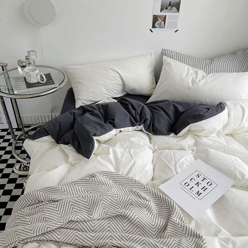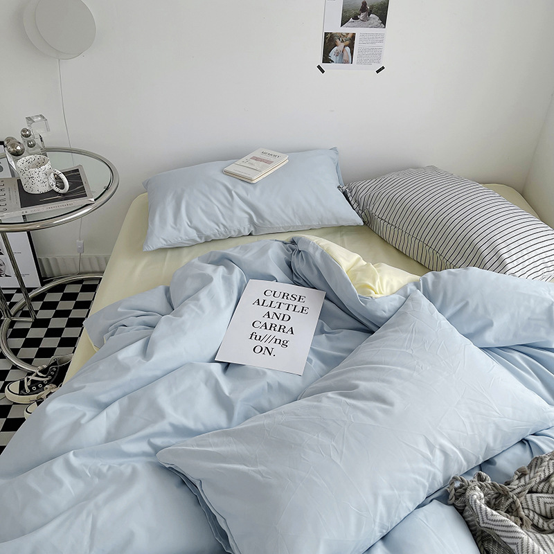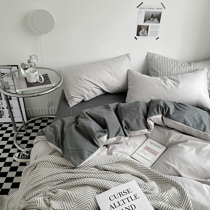 Постельный комплект из хлопчатобумажной ткани, однотонный, четырехпредметный, в японском стиле, простой, с начесом, оптом, для общежития, трехпредметный комплект