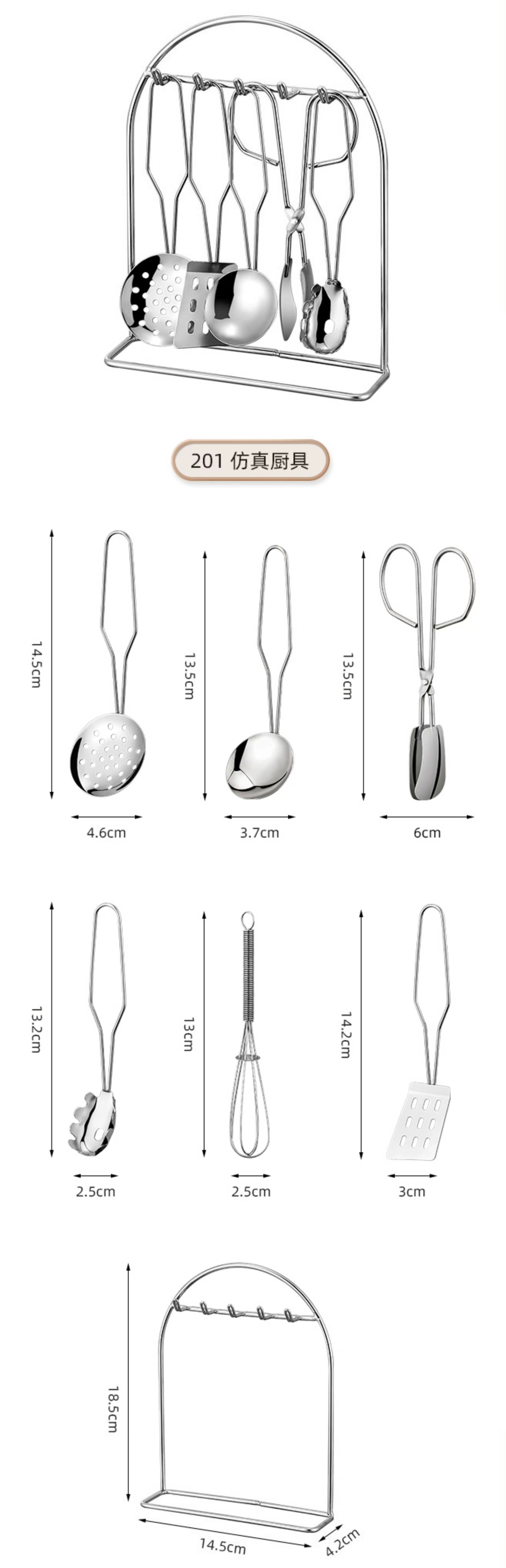 Набор образцов из 7 предметов; ложка; грабли ложка; дуршлаг; лопаточка; Сбивалка для яиц; Подвесная стойка; зажим для хлеба