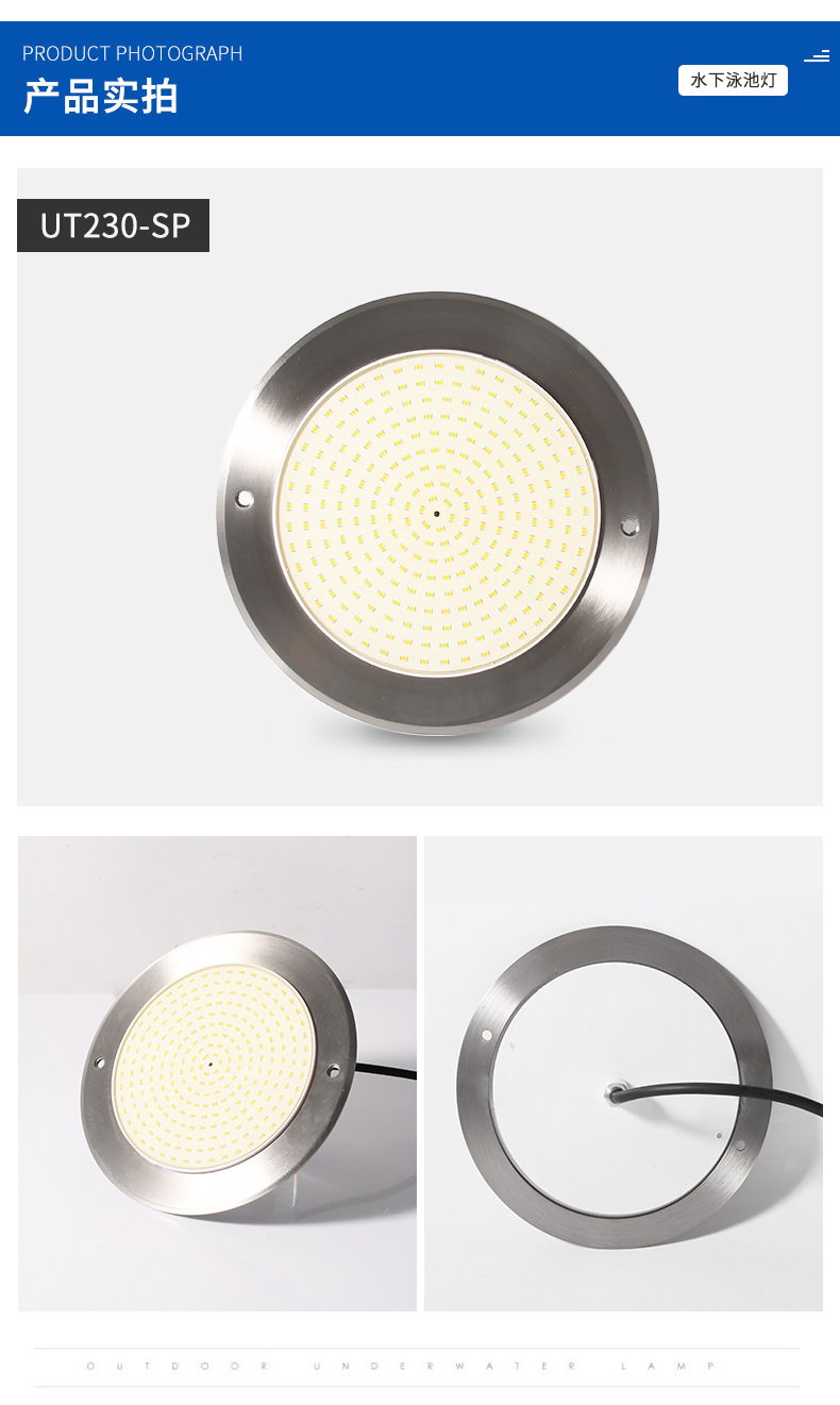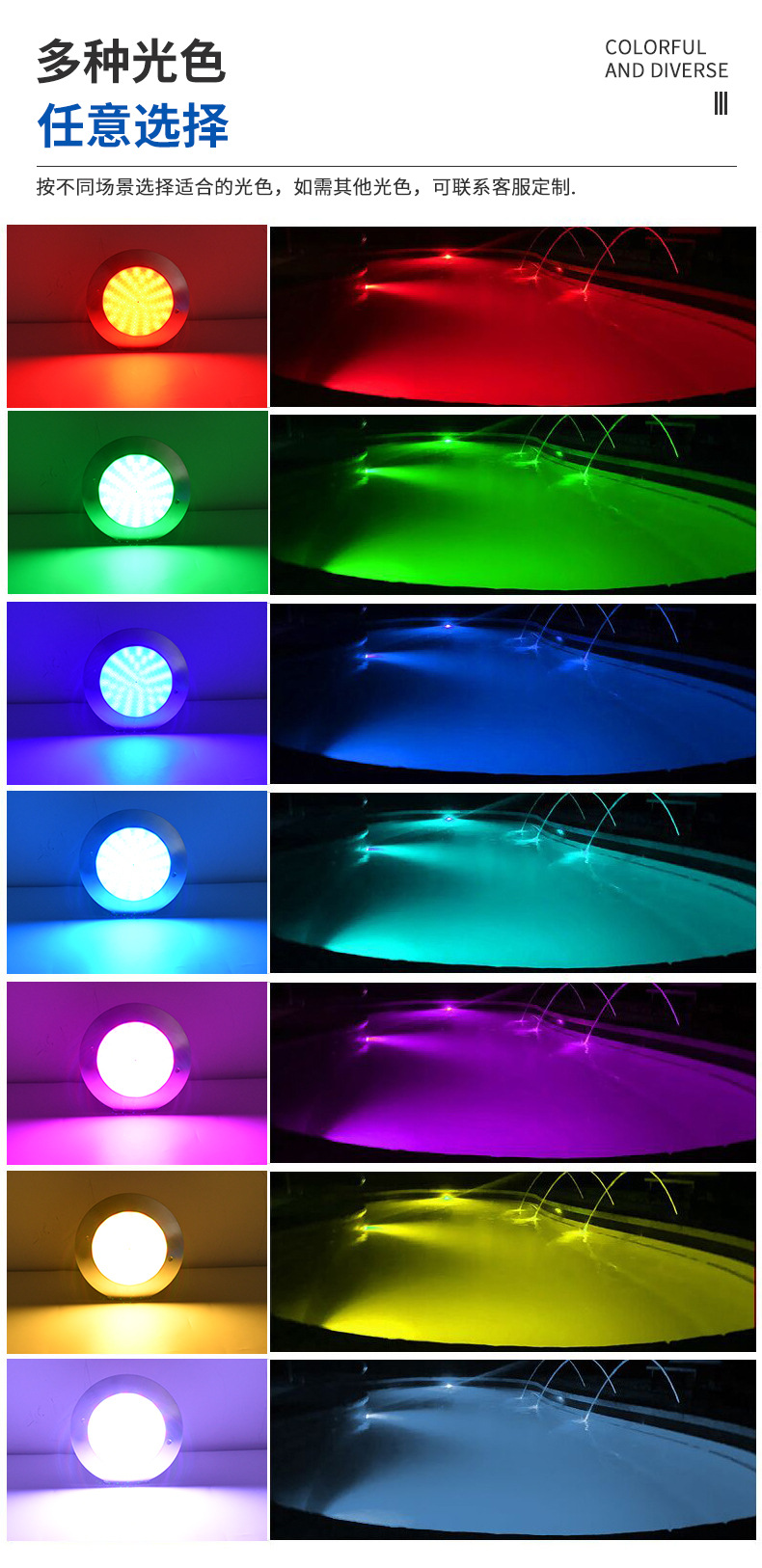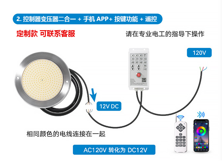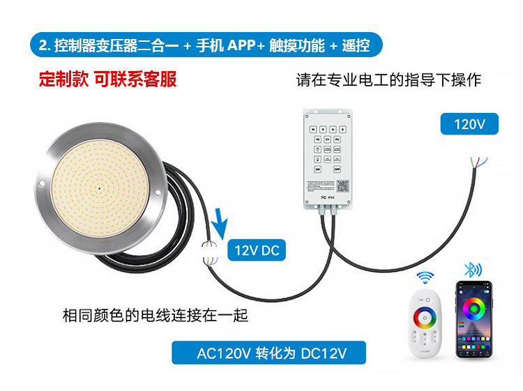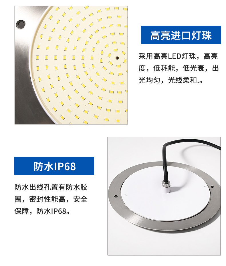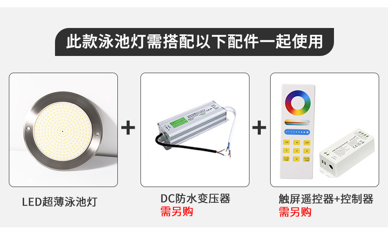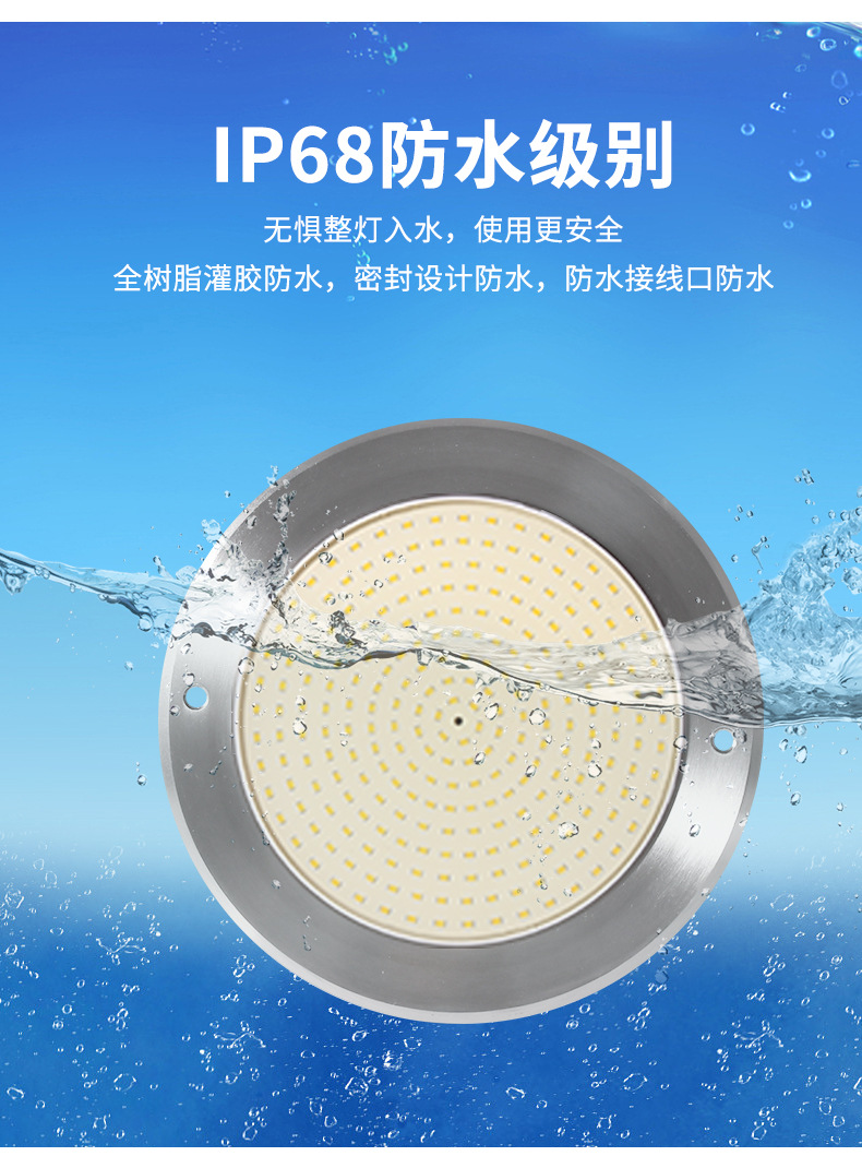 Подводный светильник для бассейнов из нержавеющей стали 316, ультратонкий, полностью герметичный с клеевым покрытием, с беспроводным управлением через мобильное приложение.