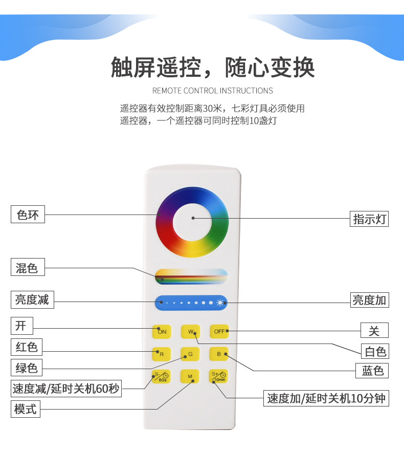 Теплый белый (лампы); Чистый белый (лампы); Цветные (только лампы); Контроллер приложения Tuya + пульт дистанционного управления; Контроллер приложения Baolian Lamp + пульт дистанционного управления