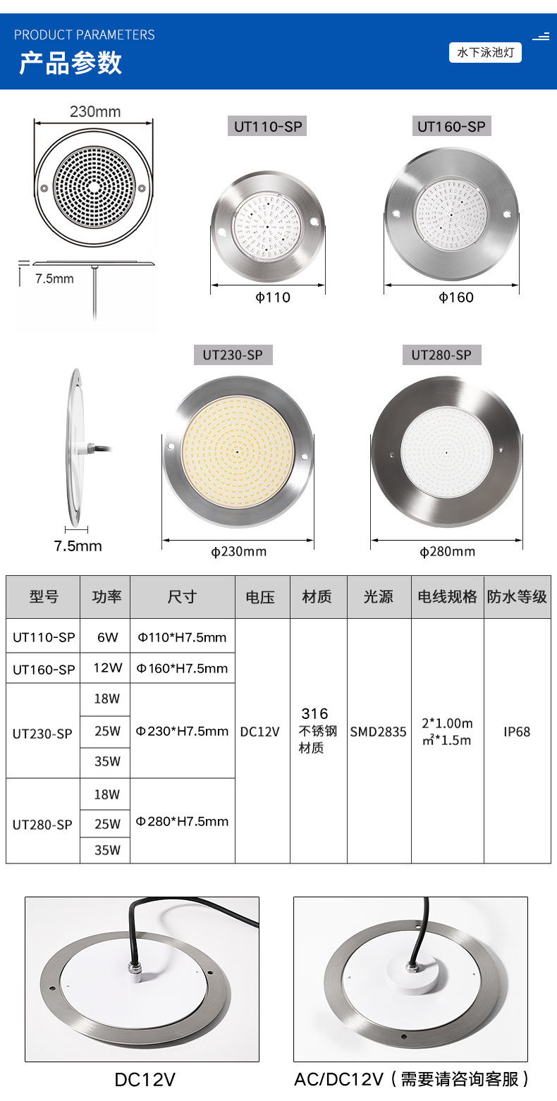 6w(110mm); 12w(160mm); 18w(230mm); 25w(230mm); 35w(230mm); 18w(280mm); 25w(280mm); 35w(280mm)
