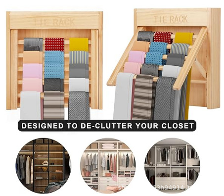 Деревянная вешалка для галстуков Стеллаж для хранения галстуков Настенная складная вешалка для галстуков Стеллаж для хранения деревянных галстуков