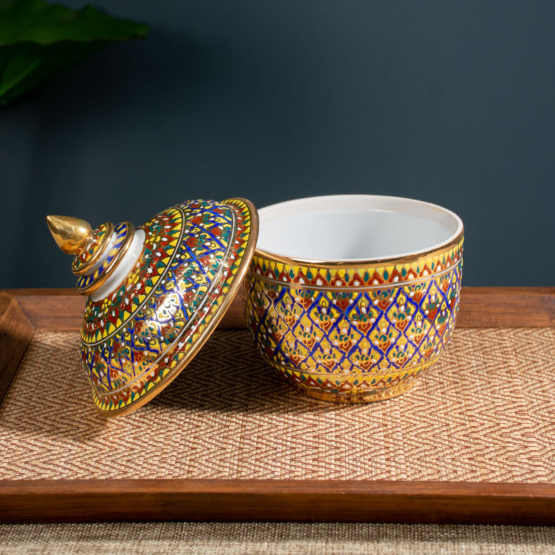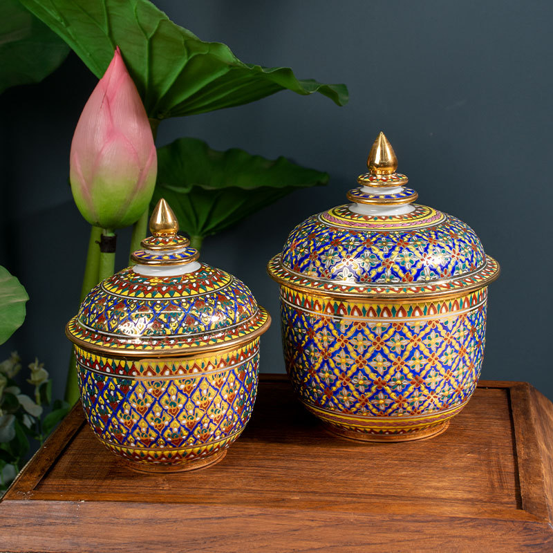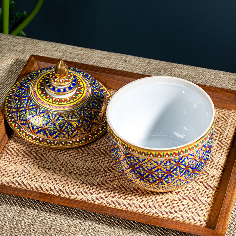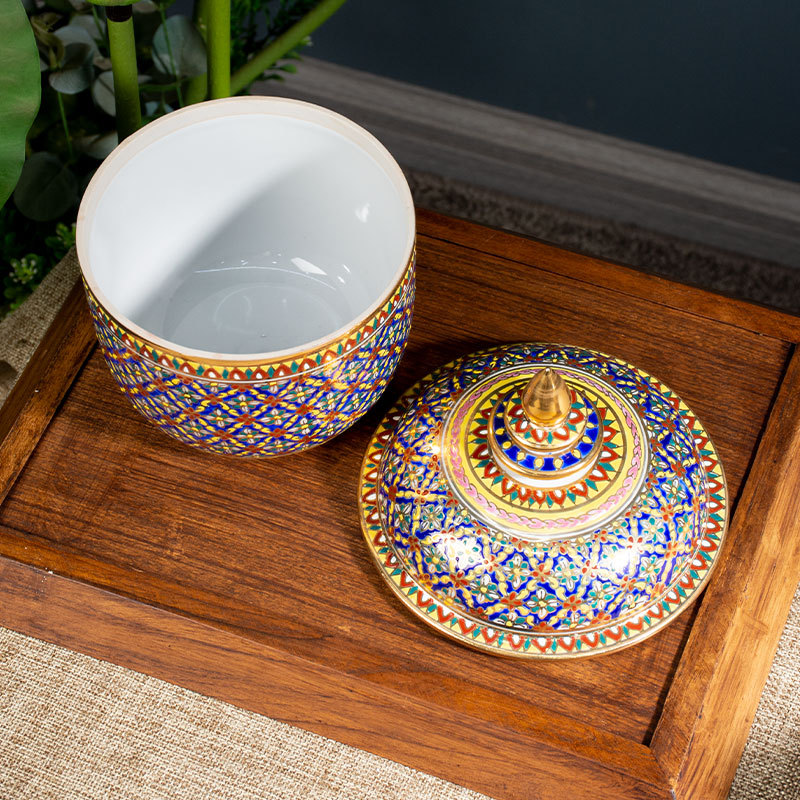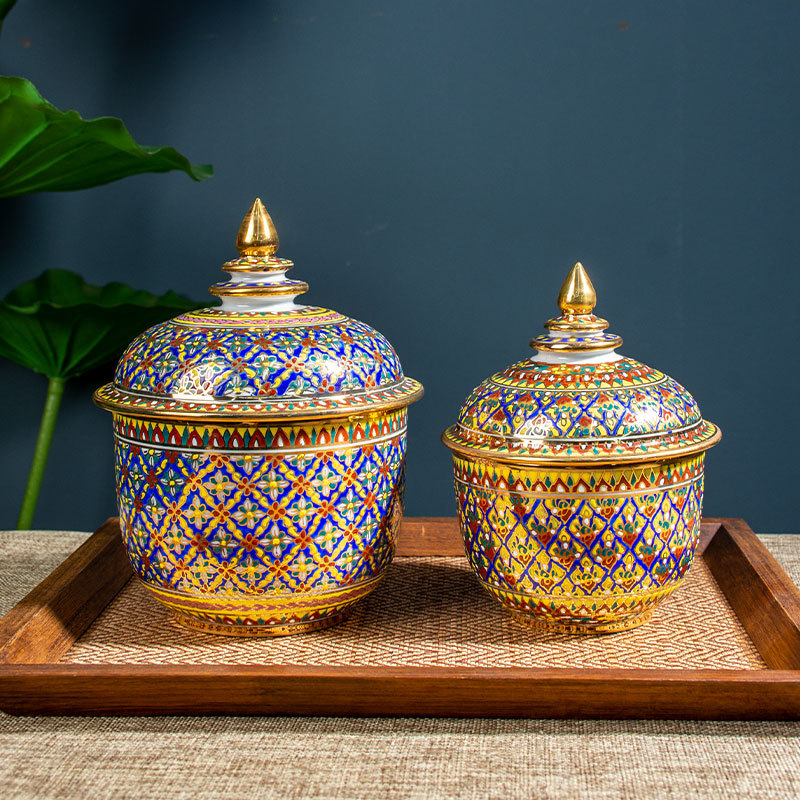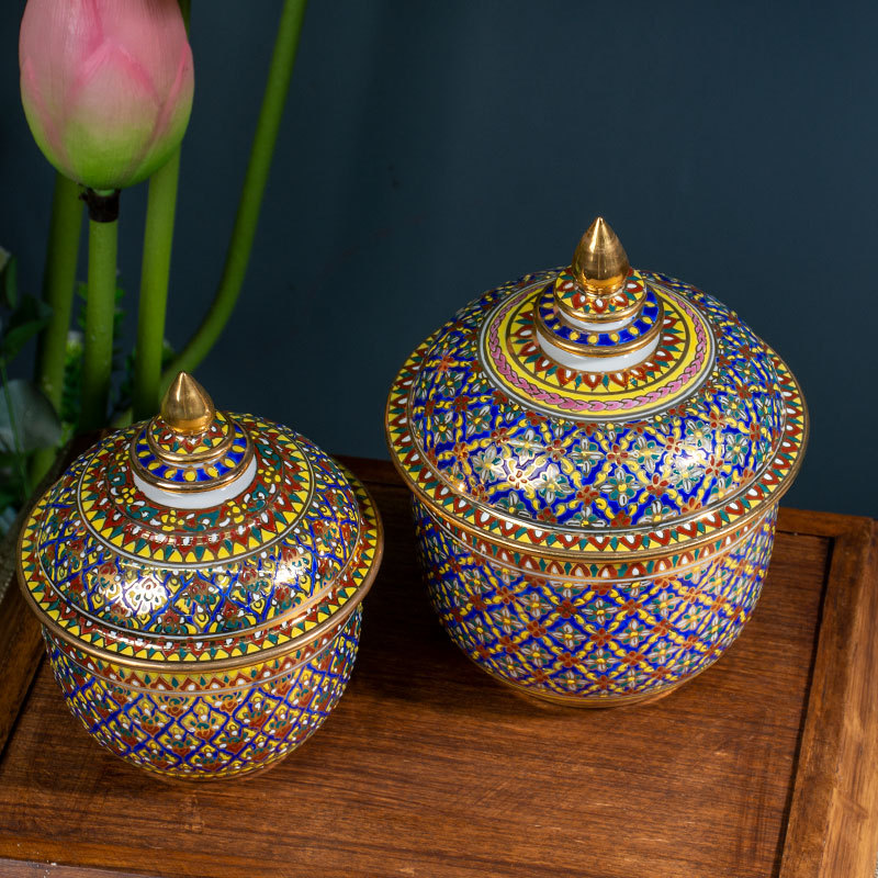 Импортированная из Таиланда керамическая банка для хранения цвета эмали с ручной росписью с крышкой Чайная банка Настольные декоративные украшения для хранения