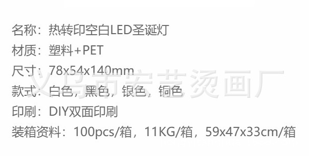 Новые товары для внешней торговли ПЭТ теплопередача рождественские украшения светодиодный фонарь тепловая сублимация светодиодный декоративный ночник