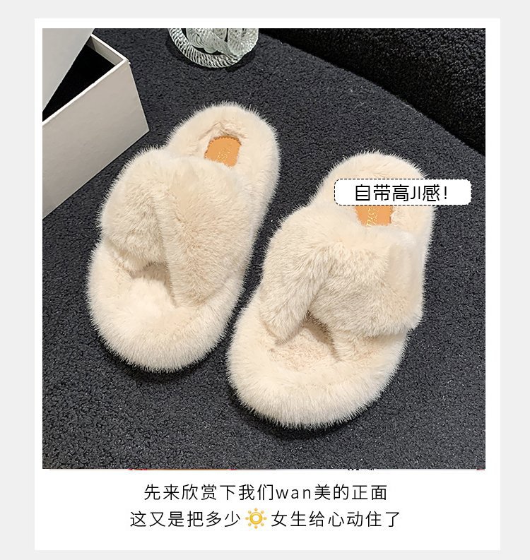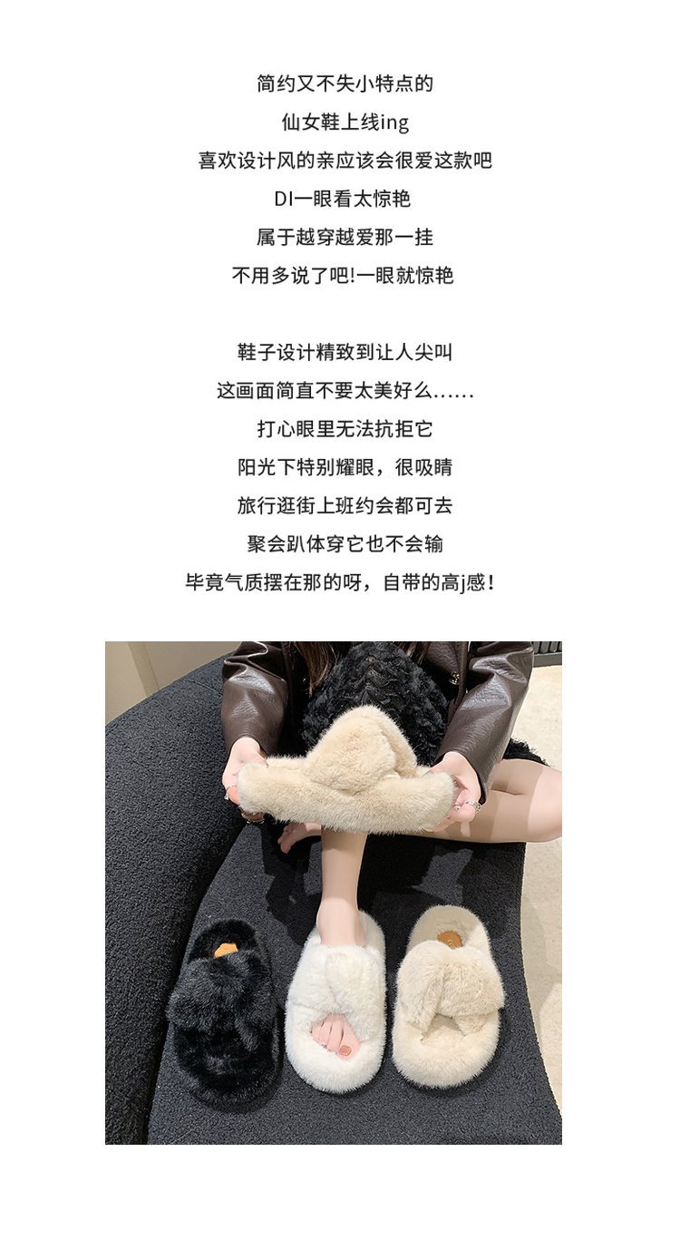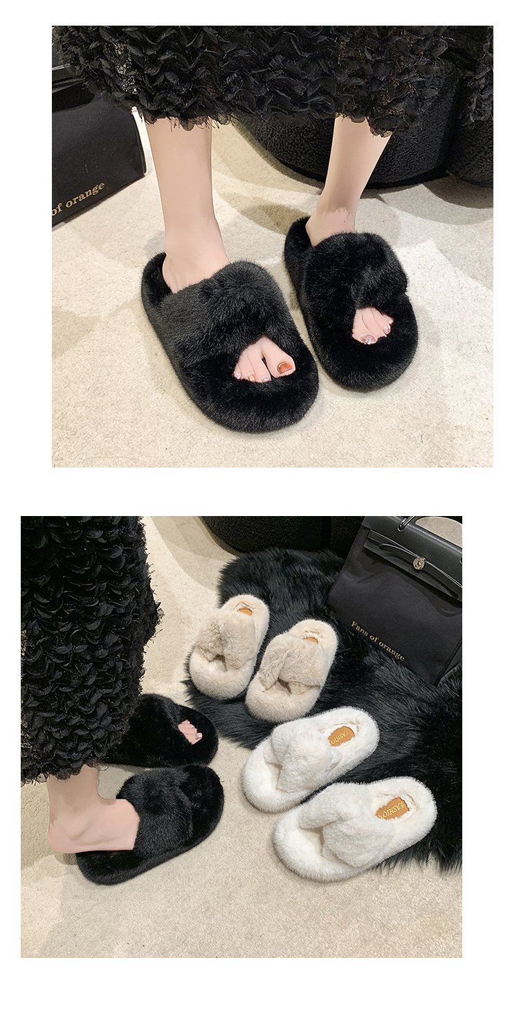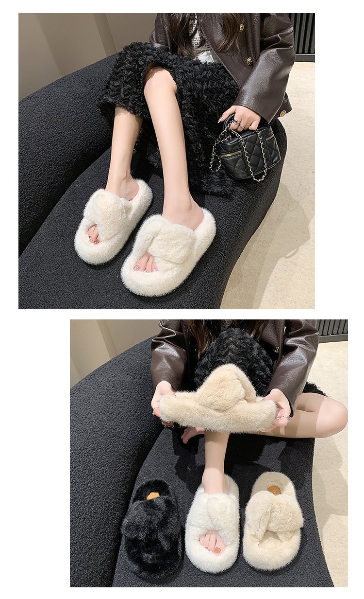 Модные пушистые тапочки для женщин, подходящие для улицы, новинка осени-зимы 2025 года, нескользящие стильные хлопковые тапочки с перекрестными ремешками для дома.