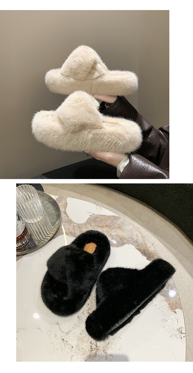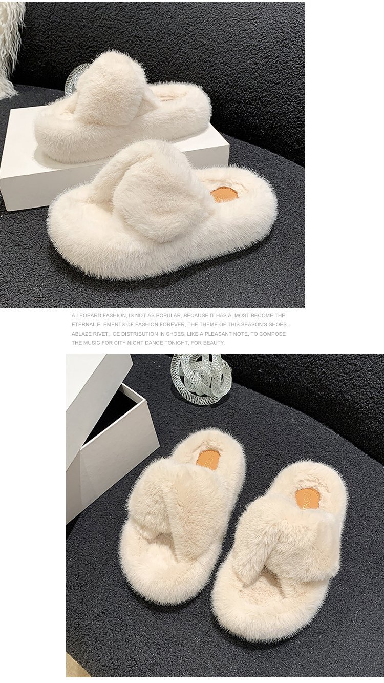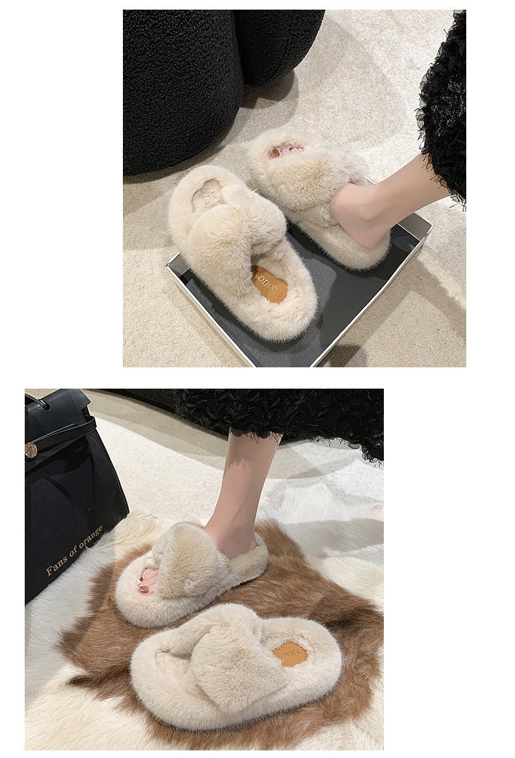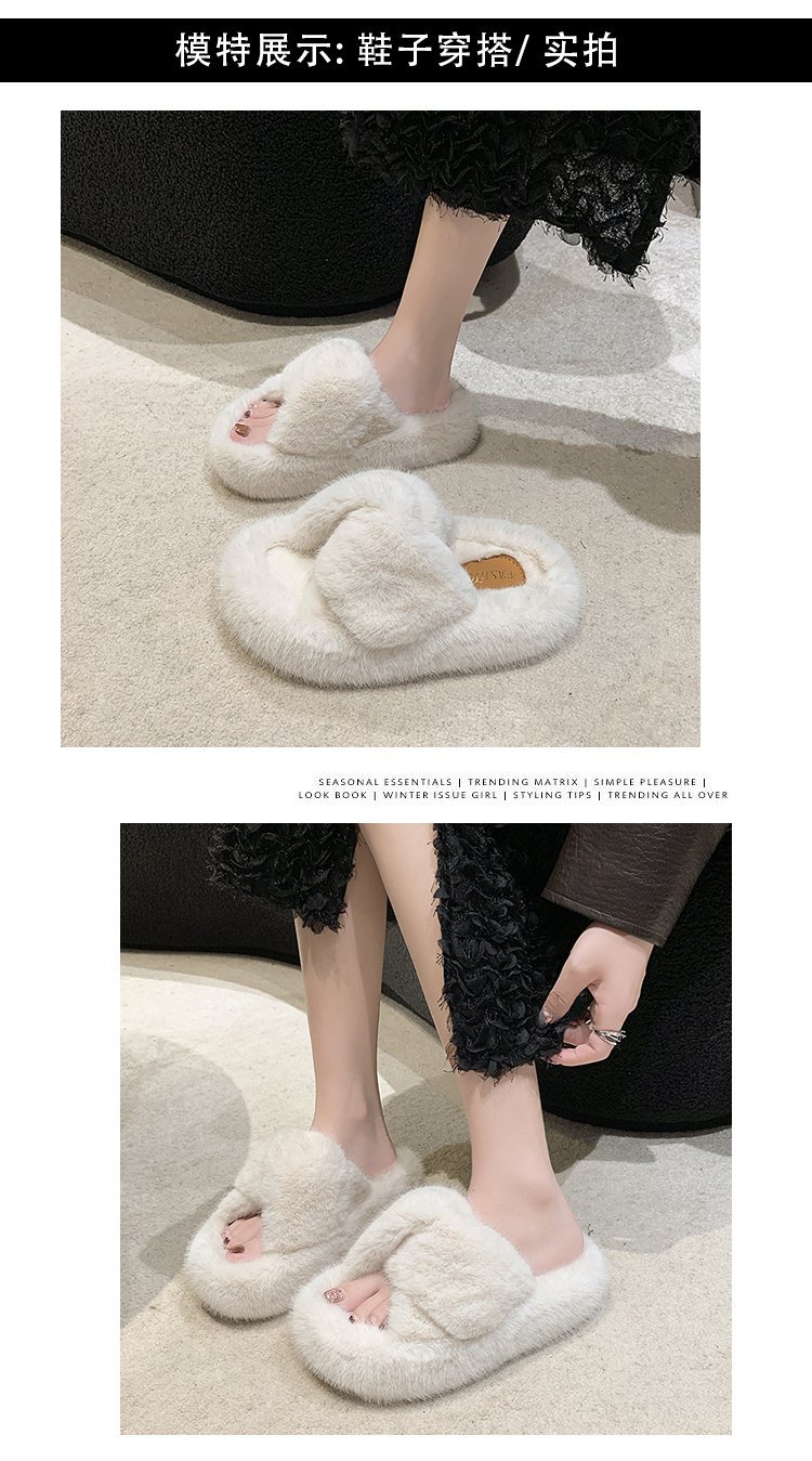 Модные пушистые тапочки для женщин, подходящие для улицы, новинка осени-зимы 2025 года, нескользящие стильные хлопковые тапочки с перекрестными ремешками для дома.