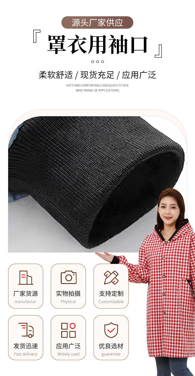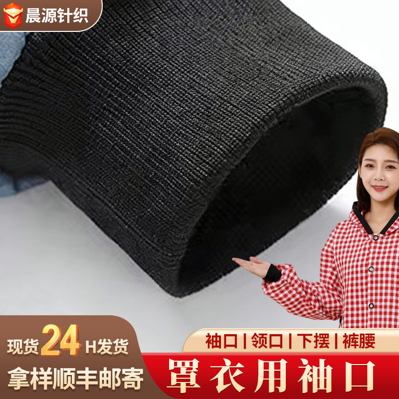 Обработка и индивидуальная настройка рукавов-смоков 1x1 с бесшовными черными ребристыми манжетами и черными трикотажными полиэстеровыми аксессуарами с прошитыми манжетами.