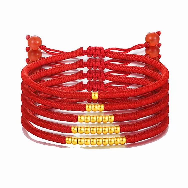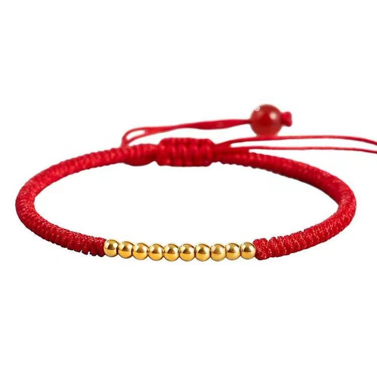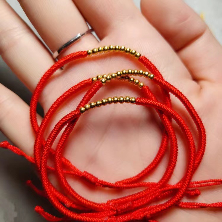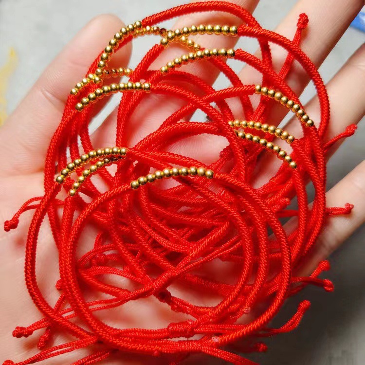 18-каратное золото жемчуг Идеальный Красный веревка Ручная Веревка 3MMK золотые бусины браслет передачи бусины завод прямой дренажной продукции