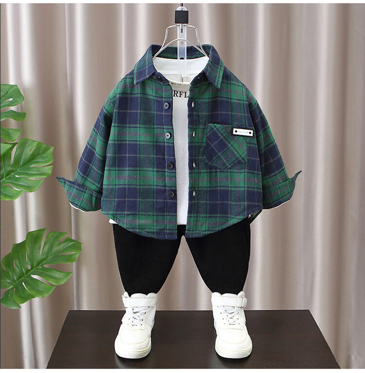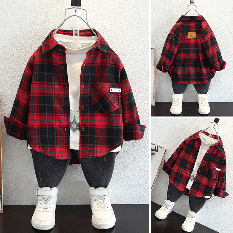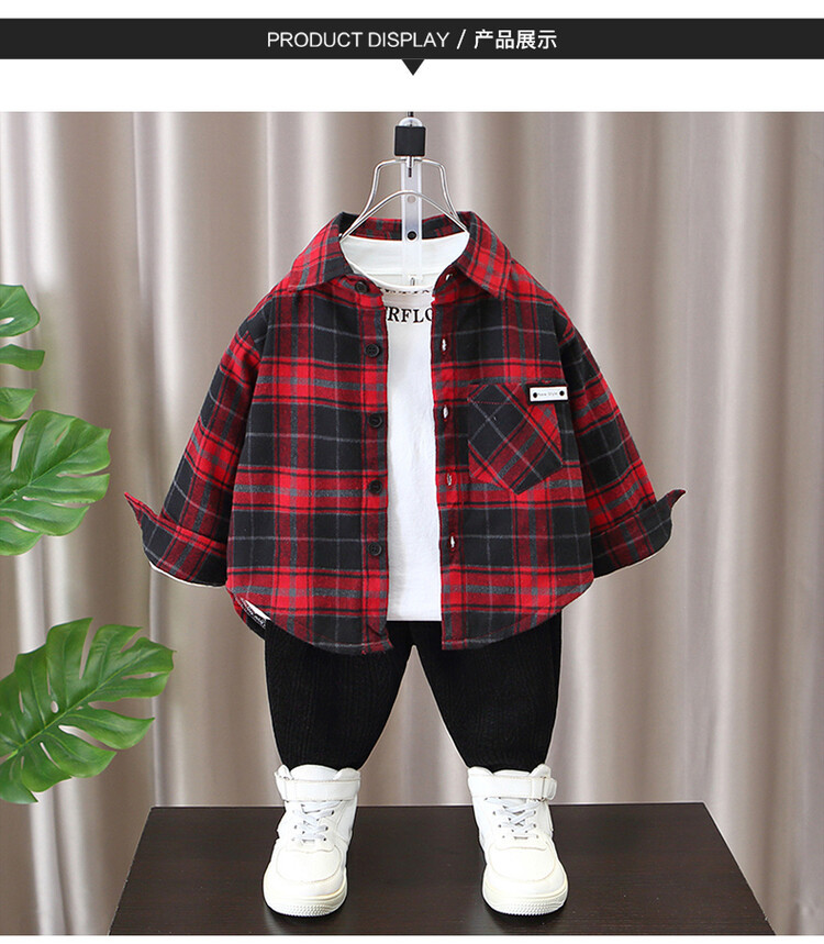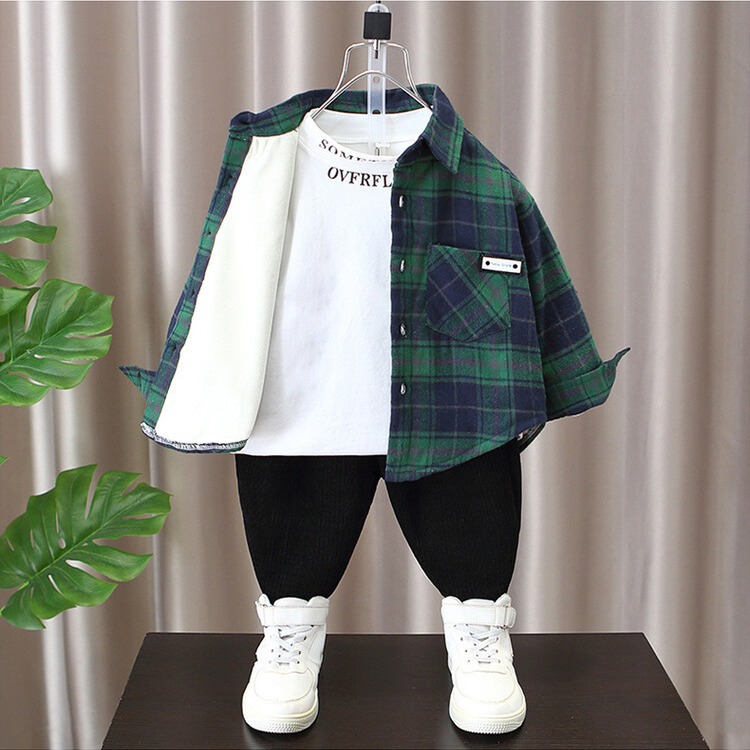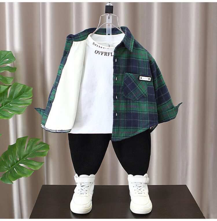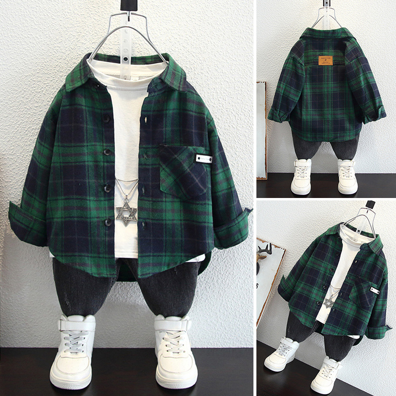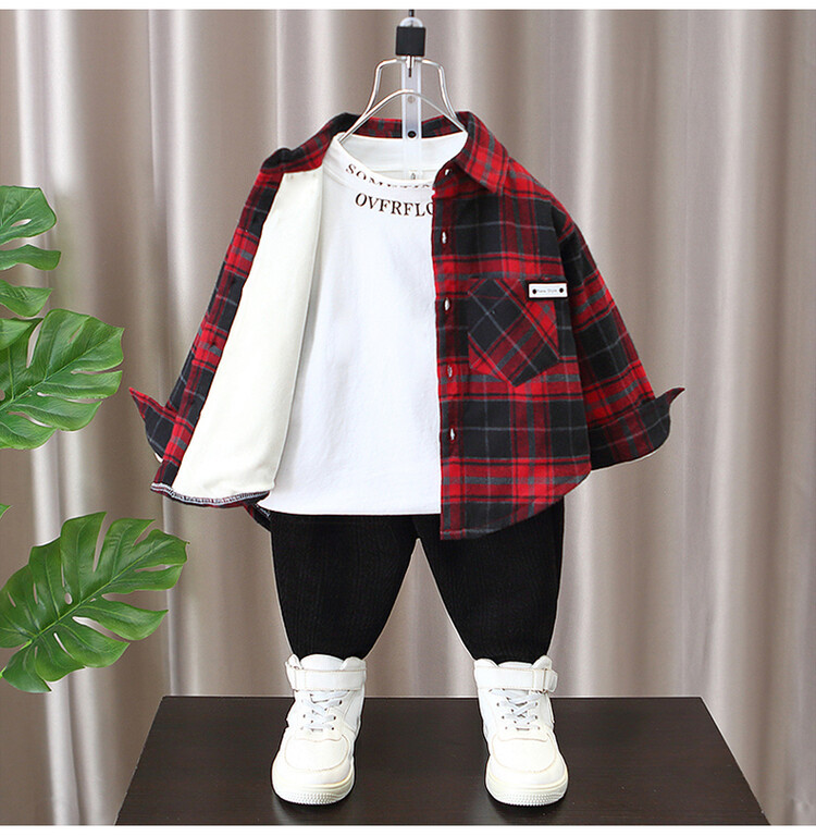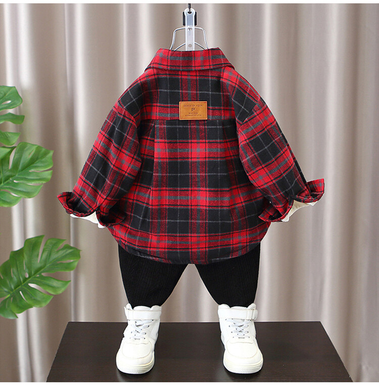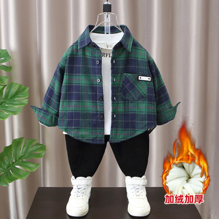 Детская рубашка в клетку с флисовой подкладкой, новая модель осень-зима 2025 года, утолщенная, модная, с мягкой подкладкой.